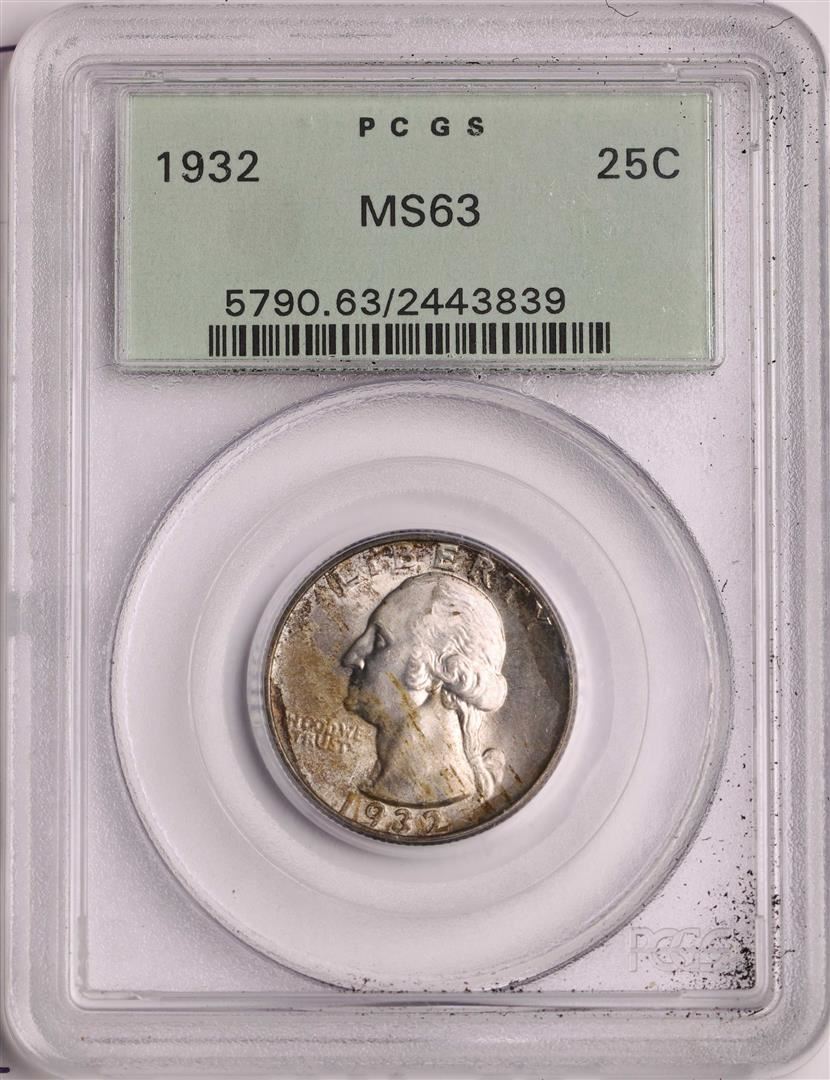 One 1932 Washington Quarter Coin PCGS MS63. PCGS Graded.
