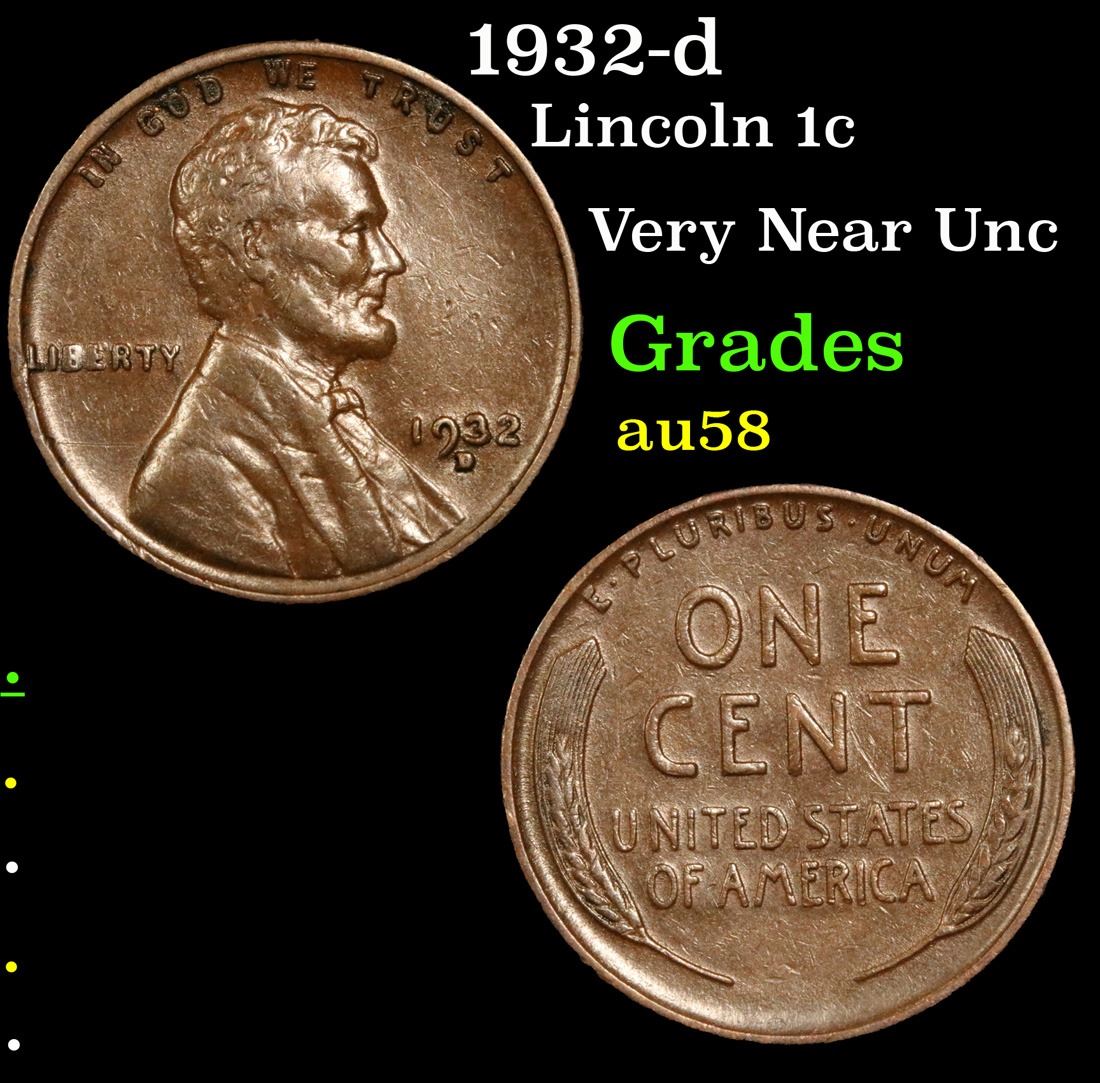 1932-d . Very Near Unc Lincoln Cent 1c Grades Choice AU/BU Slider.