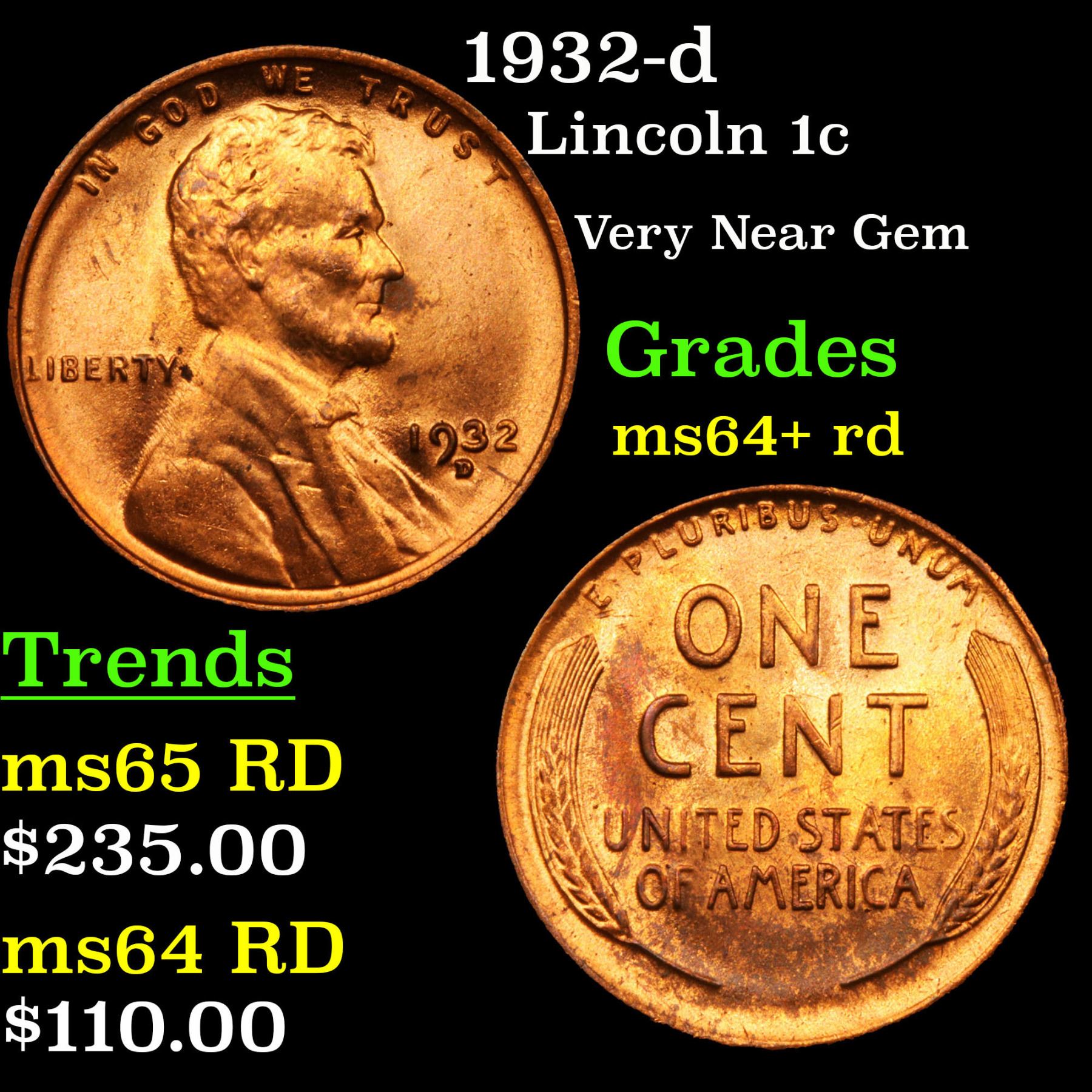 1932-d Lincoln Cent 1c Grades Choice+ Unc RD.