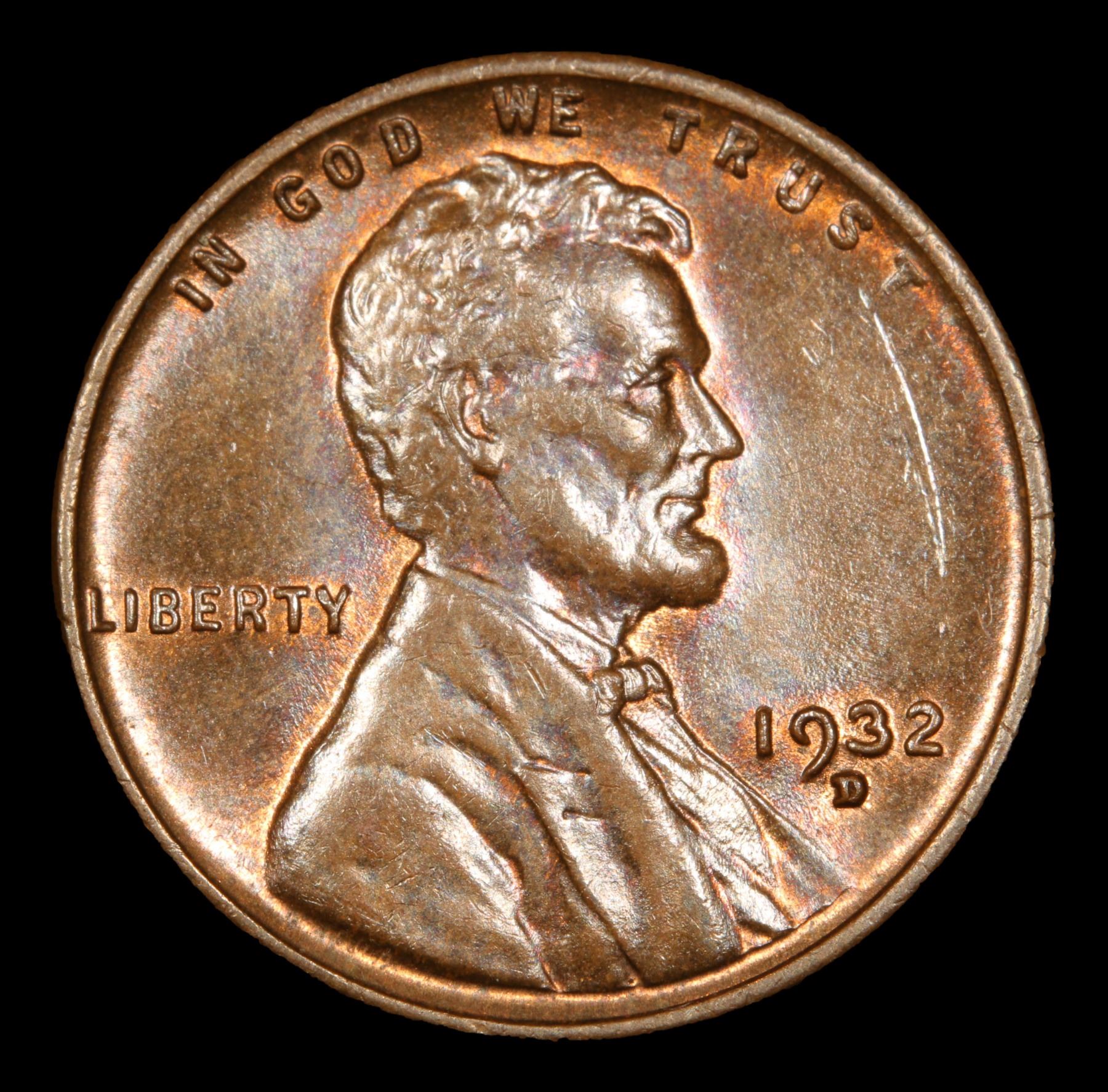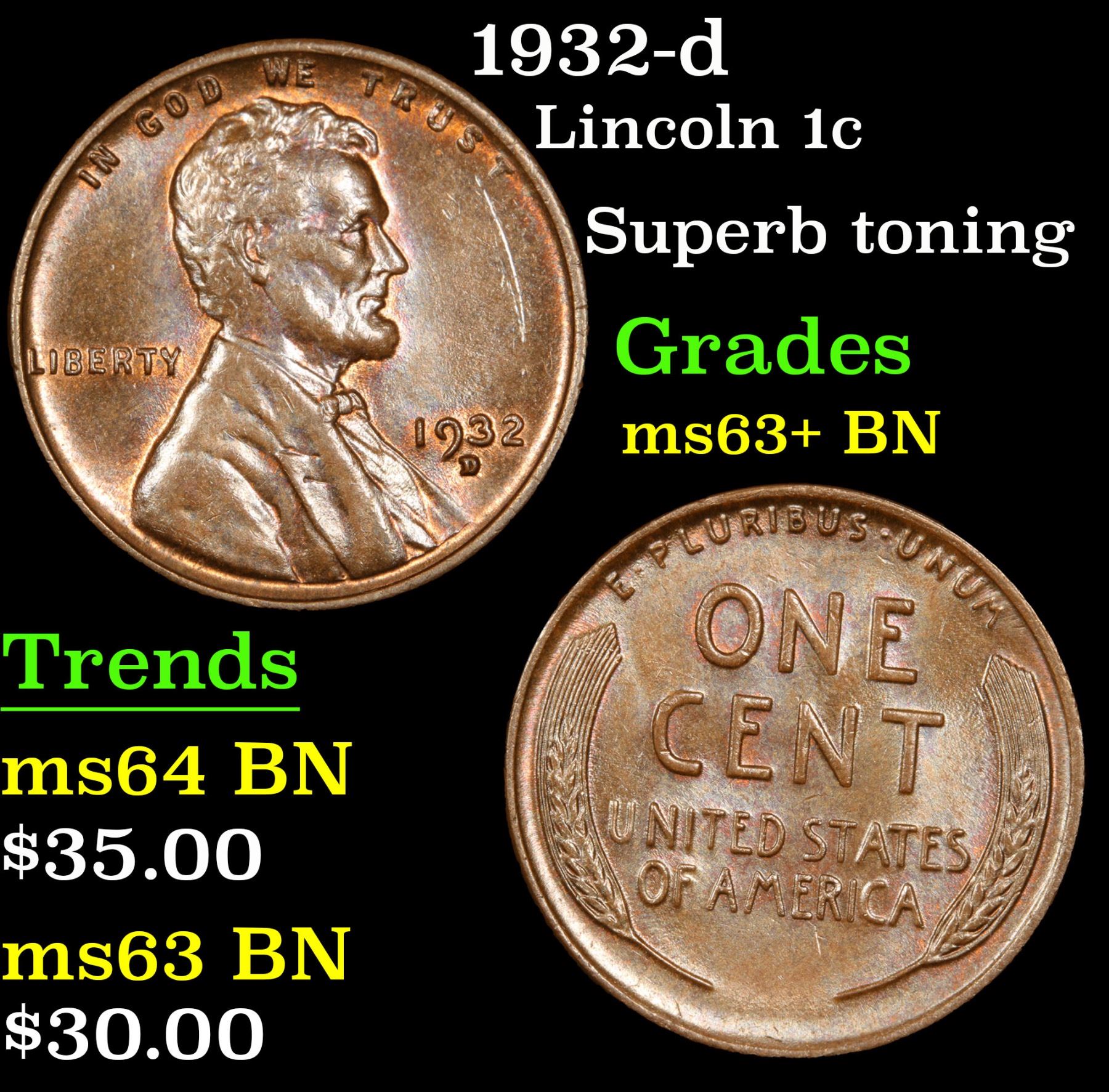 1932-d Lincoln Cent 1c Grades Select+ Unc BN. Superb toning