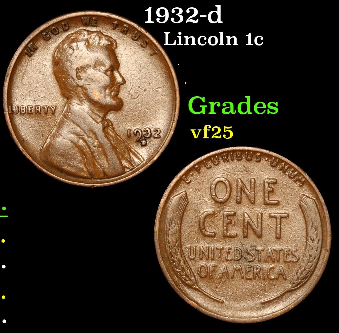 1932-d . . Lincoln Cent 1c Grades vf+.