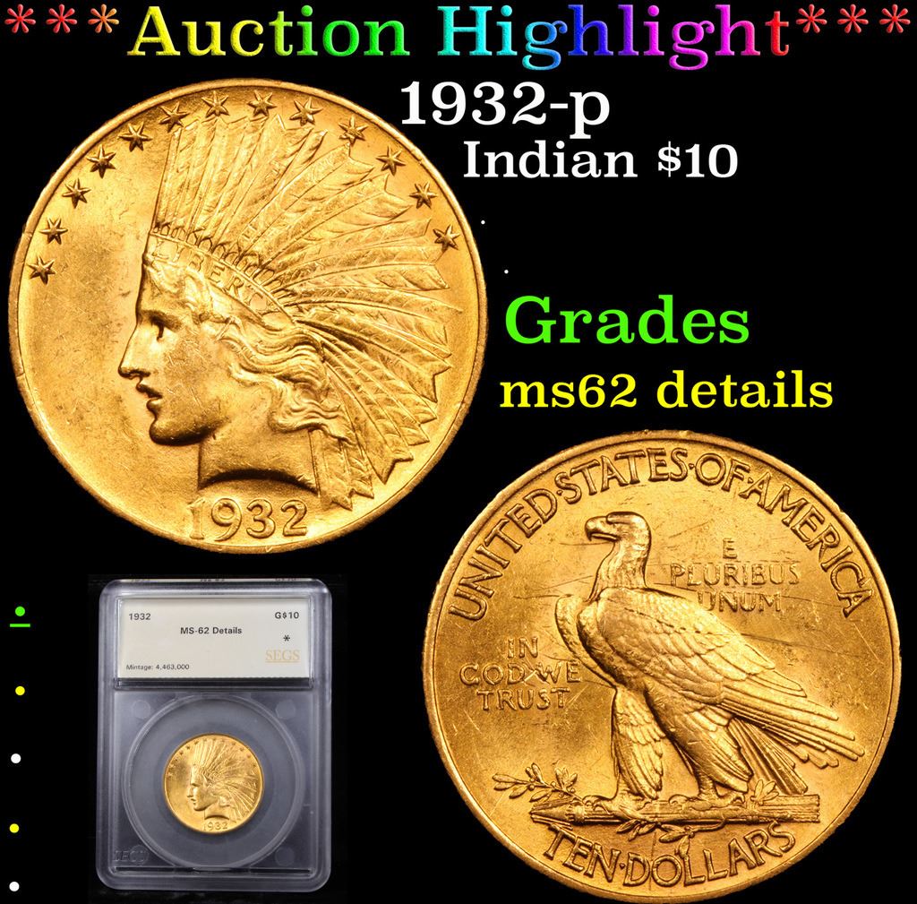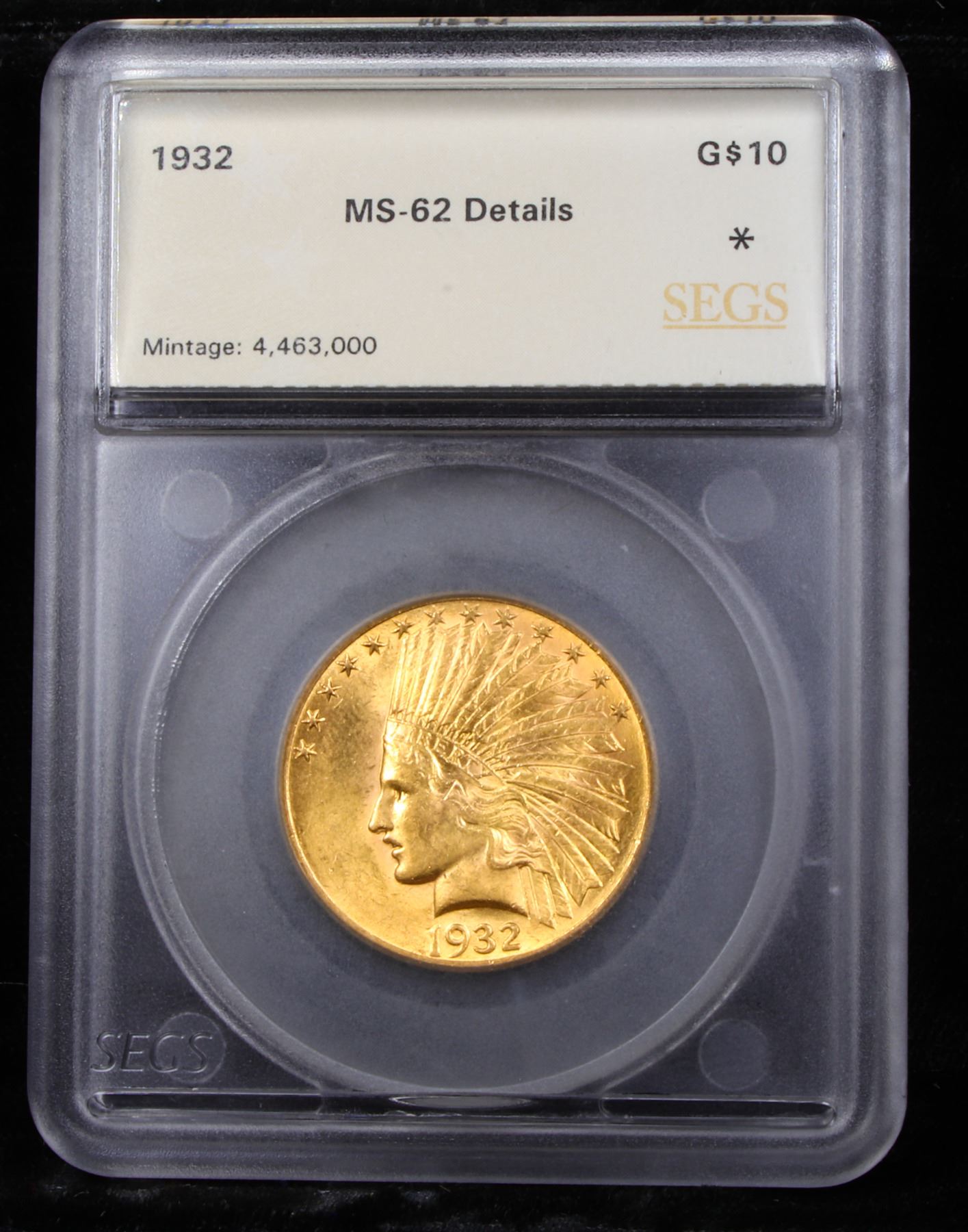 1932-p Gold Indian Eagle $10 Graded ms62 details By SEGS.