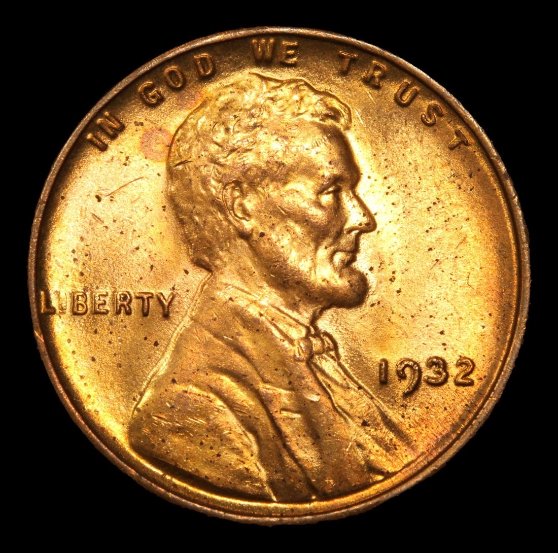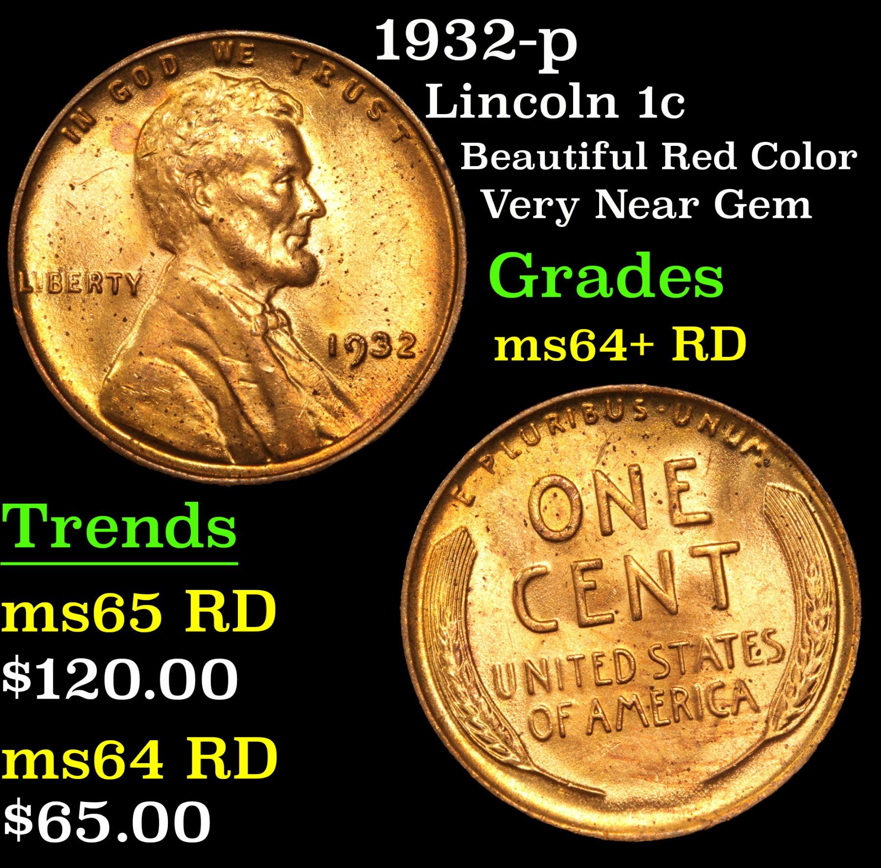 1932-p Lincoln Cent 1c Grades Choice+ Unc RD. Beautiful Red Color Very Near Gem