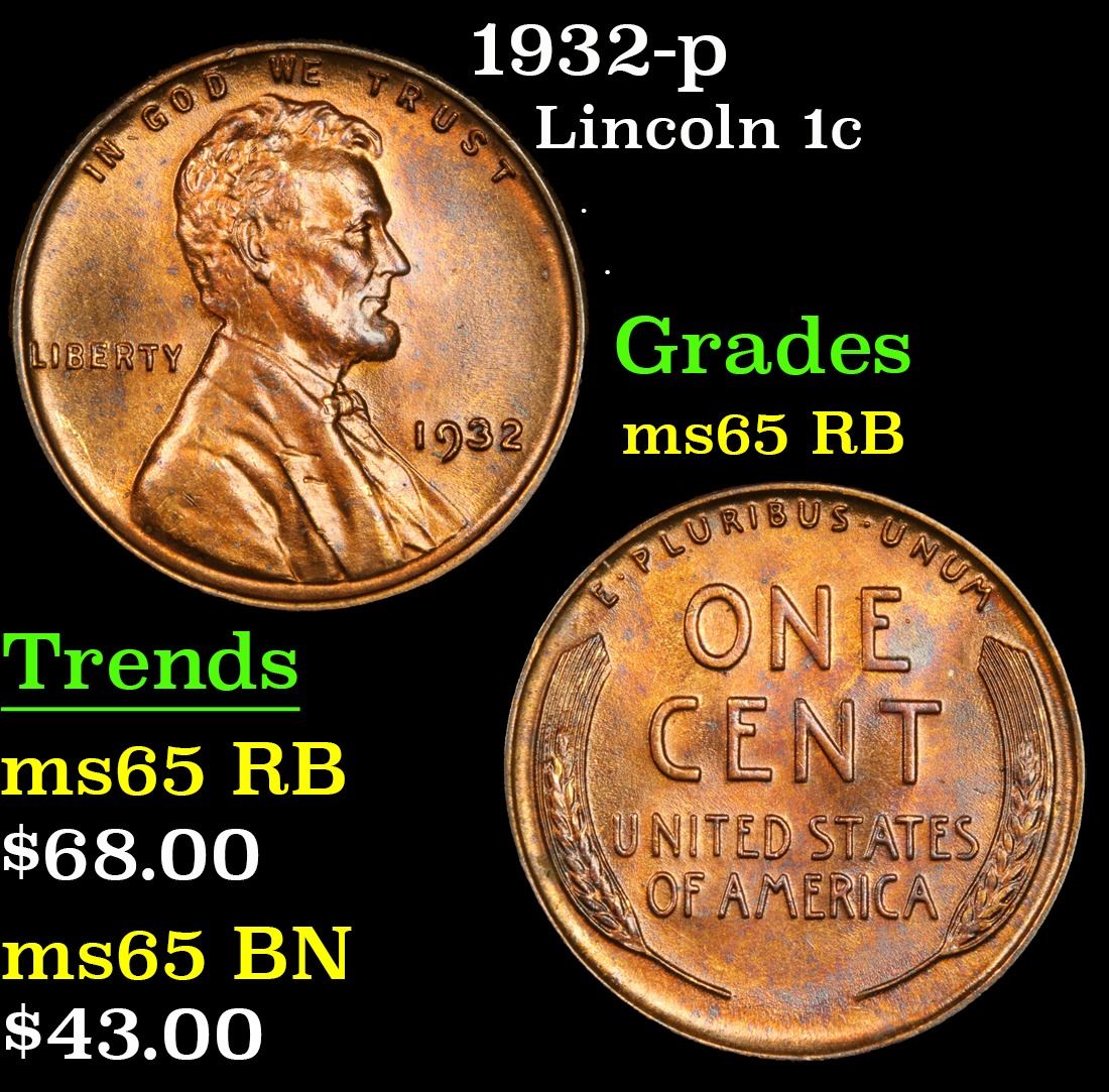 1932-p Lincoln Cent 1c Grades GEM Unc RB.