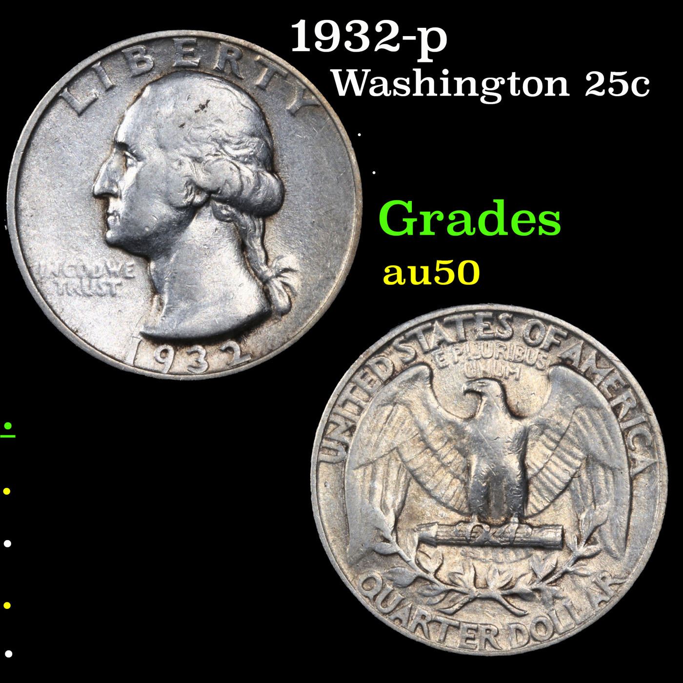 1932-p Washington Quarter 25c Grades AU, Almost Unc