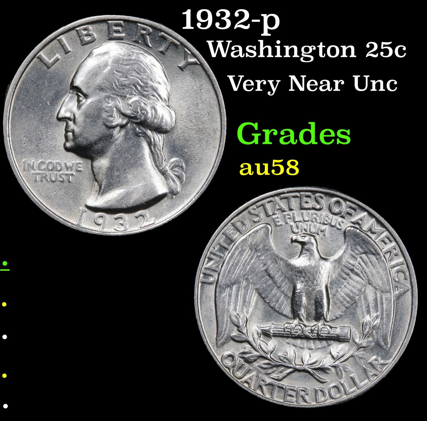 1932-p Washington Quarter 25c Grades Choice AU/BU Slider.