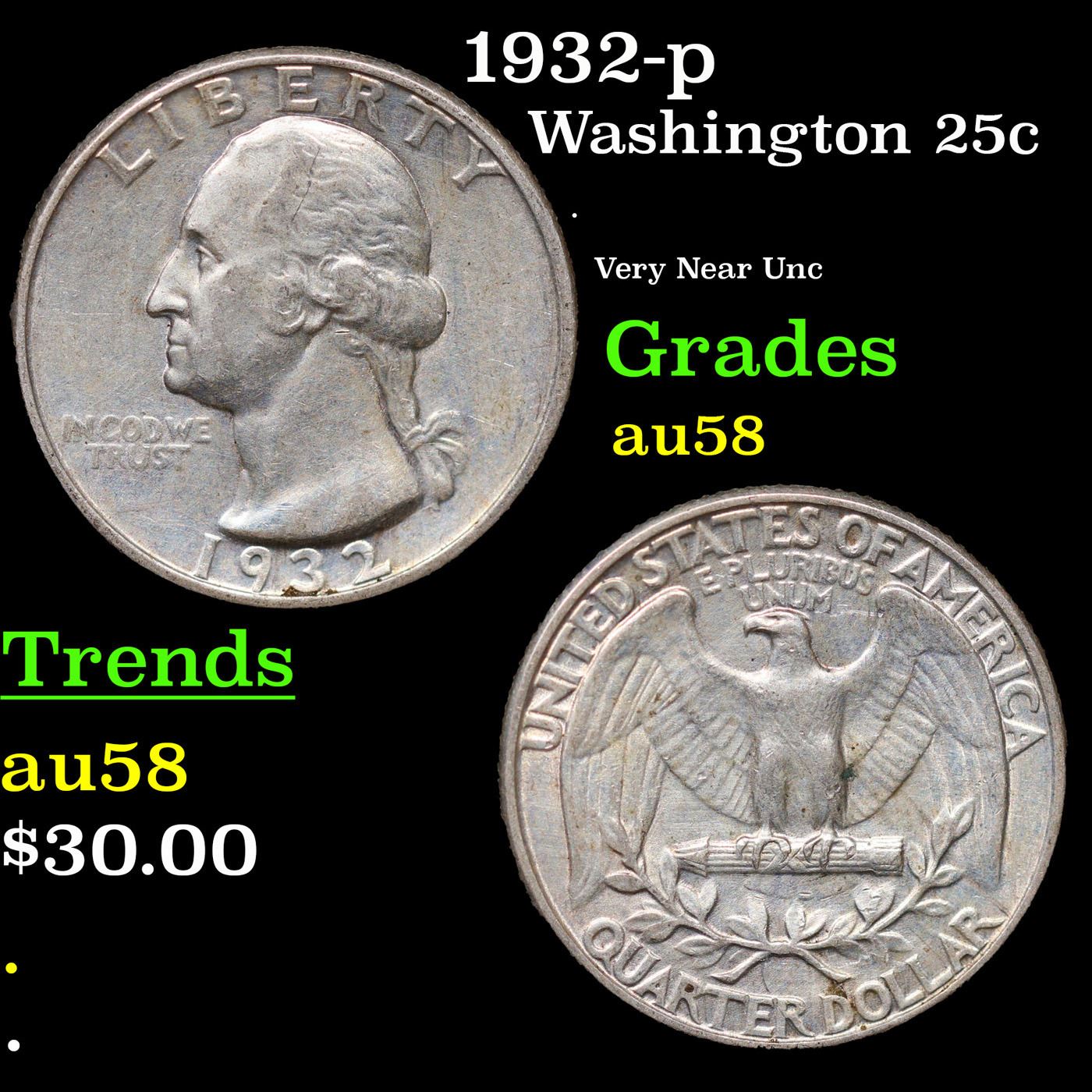 1932-p Washington Quarter 25c Grades Choice AU/BU Slider.