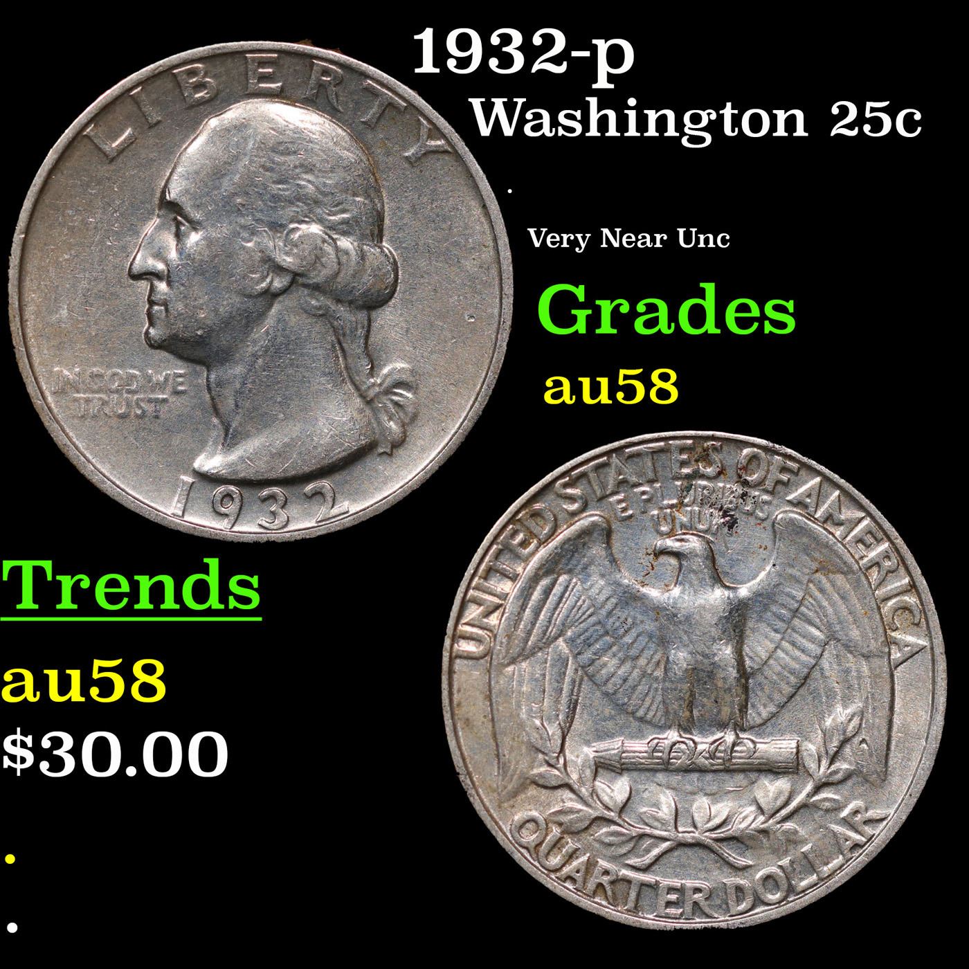 1932-p Washington Quarter 25c Grades Choice AU/BU Slider.
