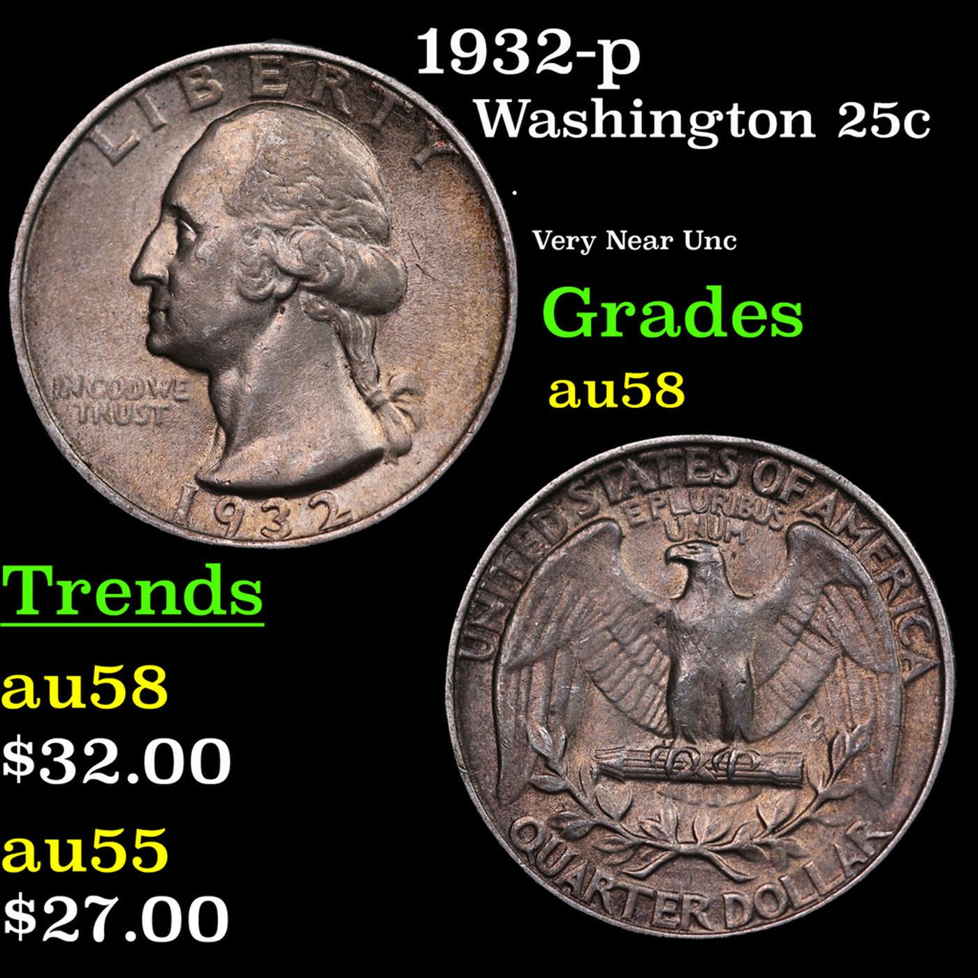 1932-p Washington Quarter 25c Grades Choice AU/BU Slider.