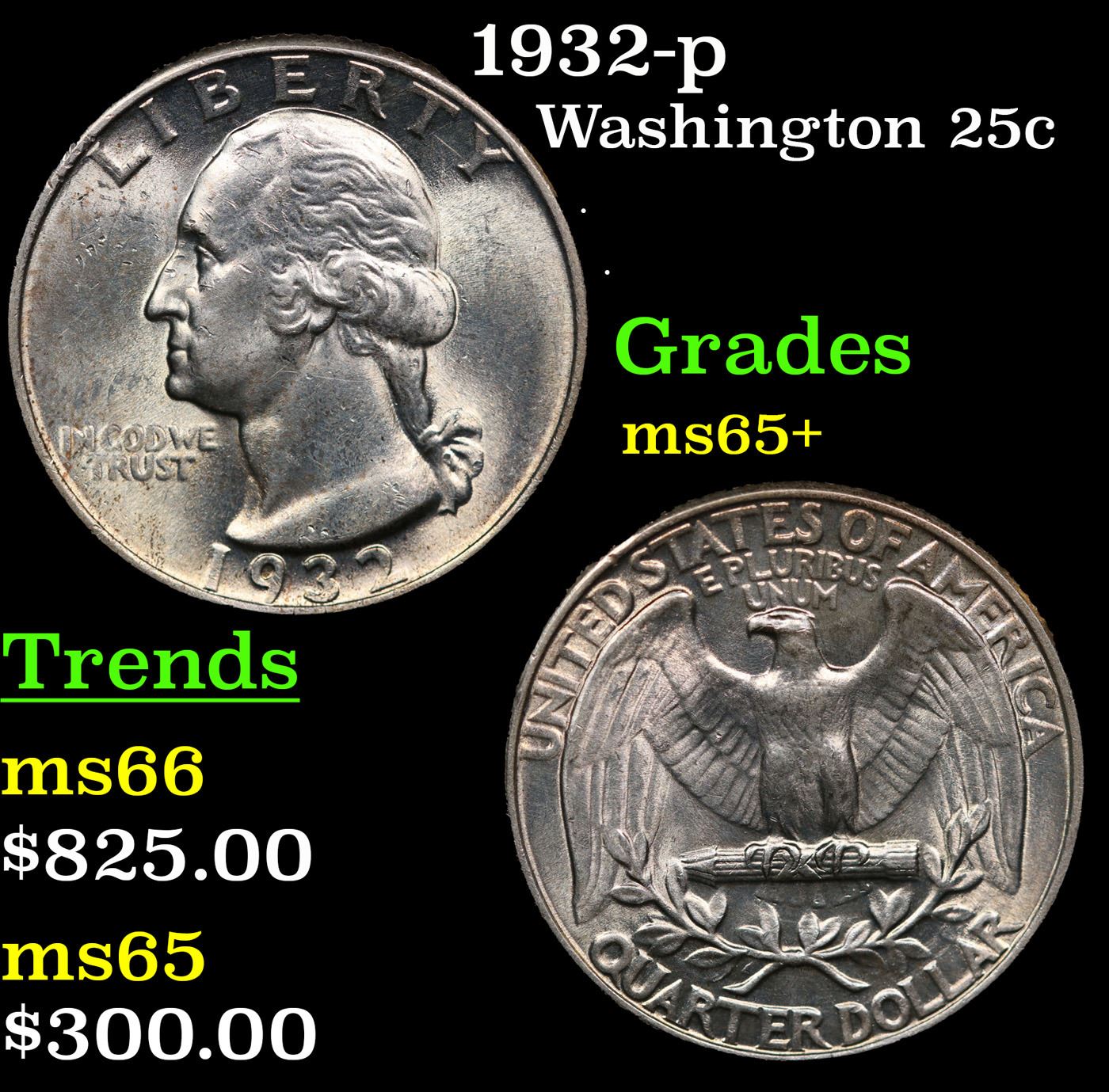 1932-p Washington Quarter 25c Grades GEM+ Unc.