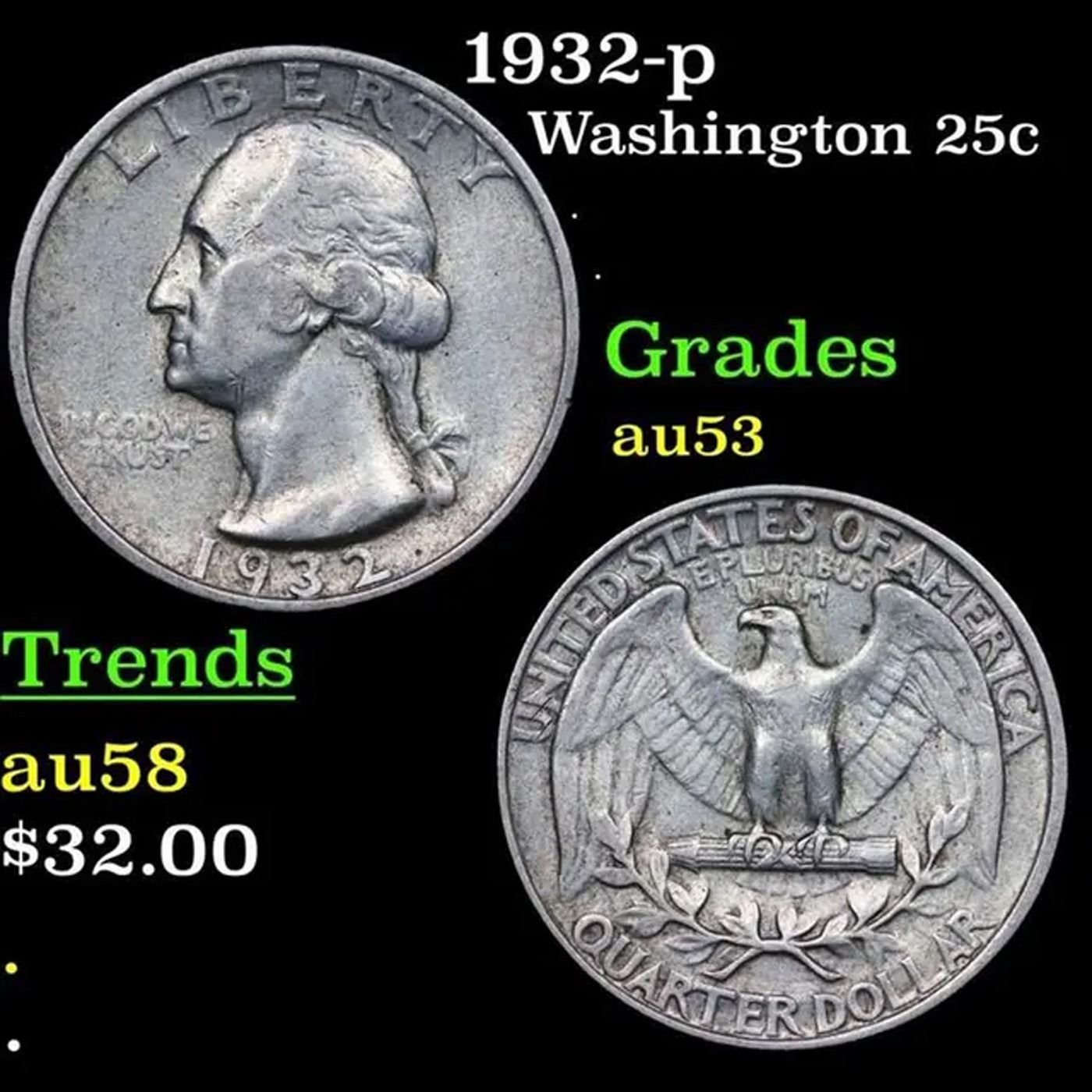 1932-p Washington Quarter 25c Grades Select AU.