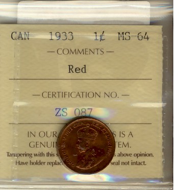 1933 1¢ ICCS MS64RD.