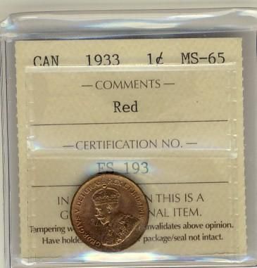 1933 1¢ ICCS MS65RD. 90% red. Attractive example.