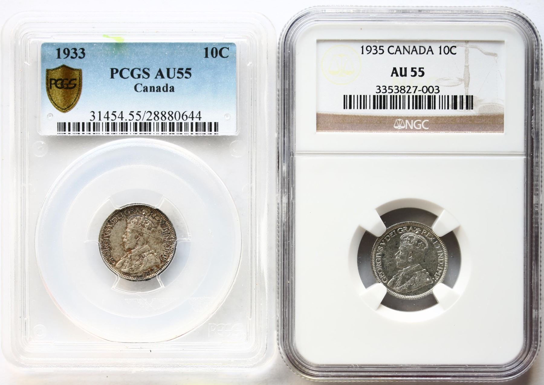 1933 10¢, 1935 Both coins PCGS/NGC Choice About Uncirculated-55.