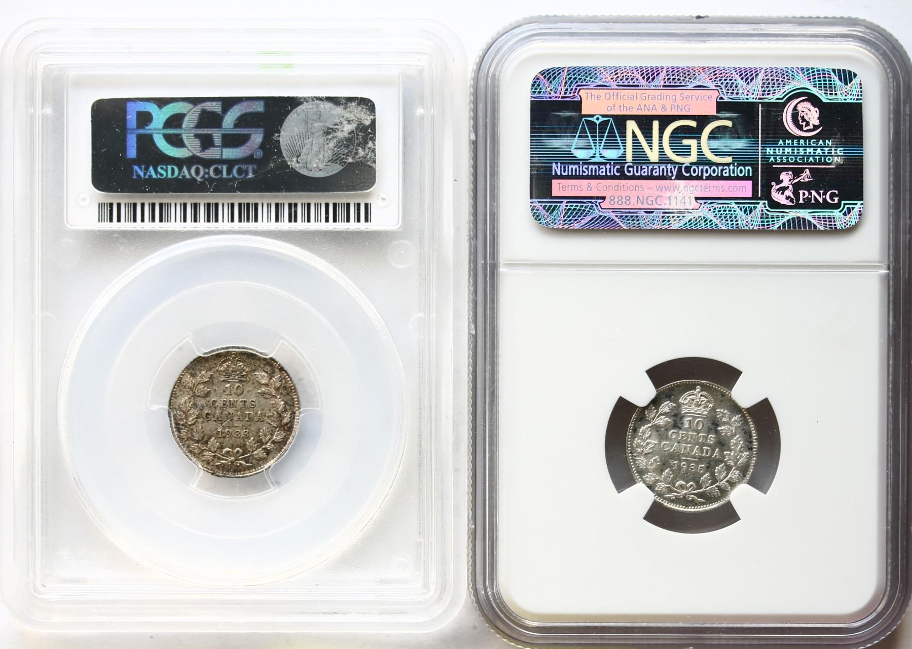 The cataloguer has taken every reasonable measure to ensure that all of the lots in this sale are as described and genuine. All raw coins and banknotes have been graded by the cataloger or the auction house which represent our best professional opinion. To grade coins and banknotes, we use Canadian grading standards, 42 years of experience and good conscience. However, grading is a subjective description in the opinion of the cataloger or the auction house. Among experts there are often differences of opinion on the grading and the eye appeal of a coin. The strike and the state of preservation are often debated. The Canadian Numismatic Company acts as an agent between consignors and buyers. The Canadian Numismatic Company does not guarantee that any coin or banknote cataloged will meet the standards, or the grade, of any third party grading companies. No warranty, whether impressed or implied. Items are as is, no warranty given. We cannot accept responsibility and waive all liability resulting in financial losses, and or incidentals accruing from the sale of any items, nor can we guarantee that items graded by third party services will grade the same if submitted to a different grading service or re-submitted to the same company. Statements by The Canadian Numismatic Company regarding the condition, the eye appeal, the strike and the population of items are for guidance only. All lots offered are sold "AS IS". Title to all lots remains with the auction house until paid for in full by the purchaser. But they are held at the risk of the purchaser once the time of the sale.