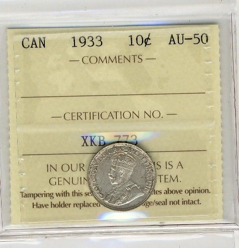 1933 10 Cents, ICCS AU50.
