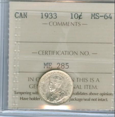 1933 10¢ ICCS MS64. Blast white ans lustrous.