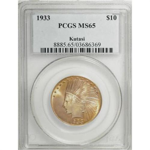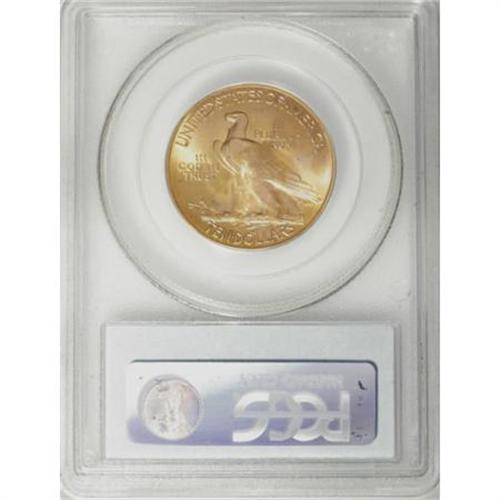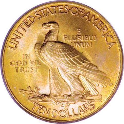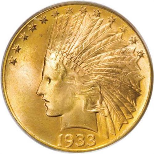 <B>1933 $10 MS65 PCGS.</B></I> The 1933 eagle had a sizeable mintage of 312,500 pieces. All were struck in January and February 1933, but most pieces were subsequently melted after Presidential Order 6260, which prohibited the release of gold coins from the mints, was issued by President Franklin Roosevelt in March of the same year. Some of those coins--perhaps numbering three or four dozen pieces--were legally released through regular channels before the order took effect. About 30 survivors were uncovered in an East Coast hoard in 1952, and a few others have since turned up in French and Swiss banks. The 1933 eagle, however, is still among the rarest Indian tens in all grades. The indispensable Garrett-Guth <I>Encyclopedia of U.S. Gold Coins </B></I>opines that "Owning an example of this date is certainly one of the highlights of any numismatic collection, and a feat precious few collectors can ever hope to accomplish." But the authors of <I>The Coinage of Augustus Saint-Gaudens</B></I> (Ivy Press, 2006) sum it up best by noting that the "1933 eagle is undeniably one of the most prestigious issues in the series. Its standing is enhanced by two factors: it is the final year of issue for this beautiful design type, and it is an extremely rare coin."<BR> The allure of the 1933 eagle, however, extends beyond its rarity and appeal to collectors. This issue is also a relic of the apex of one of the darkest periods in America's financial history, the Great Depression. Although the economic downturn began with the stock market crash of October 29, 1929, or Black Tuesday, scholars generally agree that the lowest point of the hard times was witnessed in March 1933, coinciding with the aforementioned Presidential Order 6260. Franklin Roosevelt, who was inaugurated on March 4, 1933, inherited quite a mess, but how he handled the crisis was controversial to say the least, and shall forever remain deeply imbedded in our nation's history. At the time that the 1933 tens were being minted, citizens across the country were aggressively attempting to withdraw their savings from banks, preferably in the form of gold coin. As a result banks were shutting their doors in the faces of America's working class. Roosevelt, after just a few days in office, apparently panicked and ordered that all banks be closed to prevent depositors from unnecessarily draining banks of their gold and cash supplies. The government mandated closing of the nation's banks lasted from Monday, March 6 through Thursday, March 9. The proclamation stated that "... no such banking institution or branch shall pay out, export, earmark, or permit the withdrawal or transfer in any manner or by any device whatsoever, of any gold or silver coin or bullion or currency or take any other action which might facilitate the hoarding thereof." The closing of the banks was idealistically labeled as a "bank holiday" by the government. Shortly thereafter, on April 5, 1933, Roosevelt signed Executive Order 6102, prohibiting the hoarding of privately held gold coins and bullion by any citizen of the United States. Throughout that year, Americans were subjected to other laws that further limited their rights to own gold. <BR> To have lived during those dark days must have been quite a traumatic experience, one rife with public panic, anxiety, and outright anger. President Roosevelt was obviously aware of the public unrest, as evinced in his radio address to the nation on March 12, 1933, where he closed with the following sentiment: <BR><BR> "... there is an element in the readjustment of our financial system more important than currency, more important than gold, and that is the confidence of the people. Confidence and courage are the essentials of success in carrying out our plan. You people must have faith; you must not be stampeded by rumors or guesses. Let us unite in banishing fear. We have provided the machinery to restore our financial system; it is up to you to support and make it work. It is your problem no less than it is mine. Together we cannot fail."<BR><BR> Ownership of a 1933 ten means more than having custody of a truly rare coin; it is the possession of a veritable time capsule made of gold, of which very few have survived. A total of only 35 coins in all grades have been certified at NGC and PCGS combined. To put that ridiculously low number into perspective, consider that both services have collectively graded 65,066 eagles dated 1932. The present MS65 coin is tied with six other Gem pieces at PCGS, with no examples graded finer. At NGC, there are only four coins certified at the MS65 level, with one piece finer (11/07). In terms of technical merit, the current coin holds its own with the Kruthoffer specimen, offered by Heritage at the June 2000 Long Beach Signature Sale, and compares favorably with it in terms of eye appeal. That piece, which sold for $718,750 in the October 2004 Stack's sale, has since been graded MS66 by NGC, which raises the possibility that the present piece is itself conservatively graded.<BR> While Akers states that some 1933 tens have a satiny finish, this example possesses decidedly frosted mint luster. Well balanced reddish-gold coloration graces the surfaces, which are remarkably clean, even for a Gem coin. In terms of strike, the details are nicely defined throughout. The resulting eye appeal of this example is comparable to that observed on pieces certified at a higher level. This is a coin reserved for the most discriminating connoisseur of classic U.S. gold coinage, one who understands the historical significance and absolute rarity of a high grade 1933 ten dollar and appreciates the elegance of one of the most beautiful designs in the history of our nation's coinage.<BR><I>Ex: Kutasi Collection (Heritage, 1/2007), lot 3191.<BR>From The Madison Collection.</B></I><BR><BR><B>Coin Engraver:</B> Augustus Saint-Gaudens<BR><BR><b>Shipping:</b> Coins & Currency (<a target="_blank" href="http://www.heritageauction