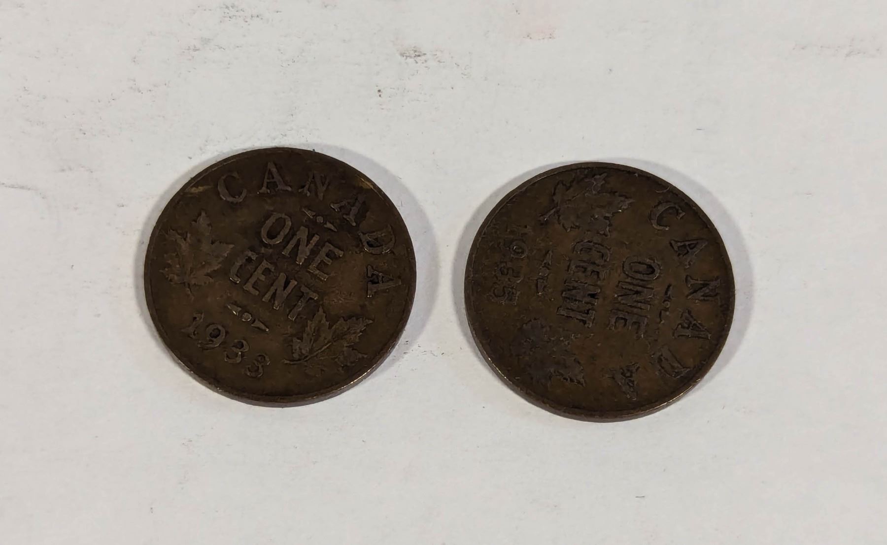 1933 & 1935 OLD CANADA SMALL 1 CENT COINS
