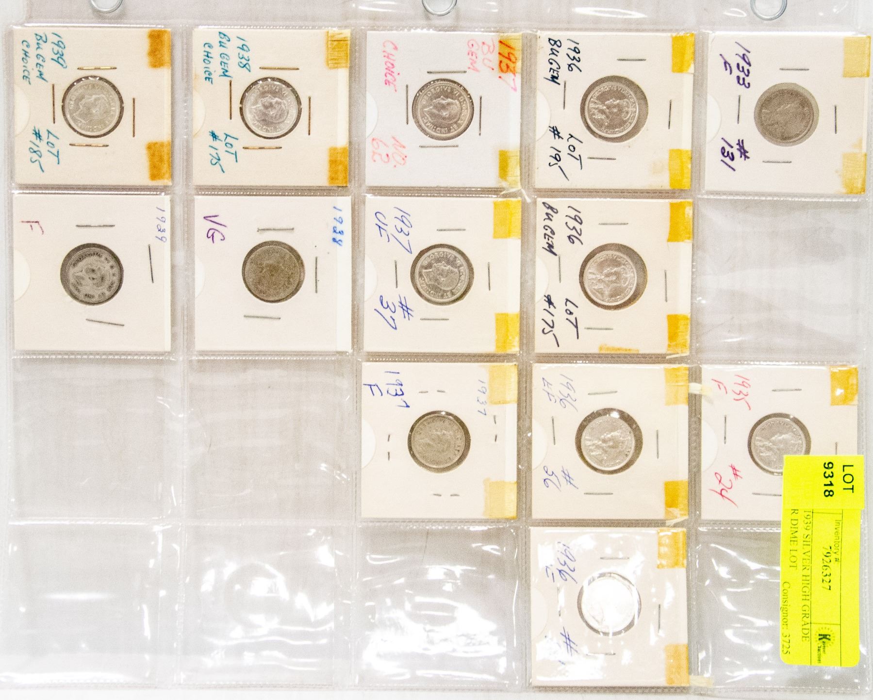 1933 - 1939 SILVER HIGH GRADE SILVER DIME LOT