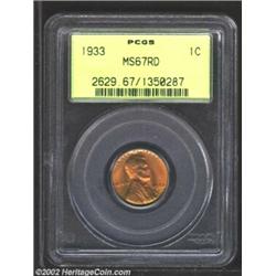 1933 1C MS67 Red PCGS. A lustrous and sharply struck Gem with impressive preservation and glorious o