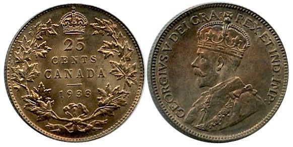 1933 25¢ CCCS MS64, light toning with strong lustre.
