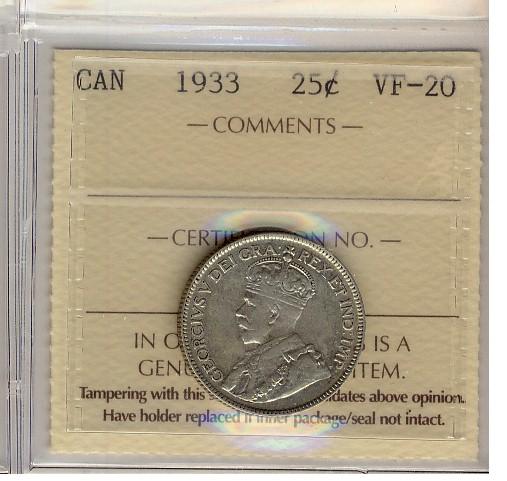 1933 25¢ ICCS VF-20