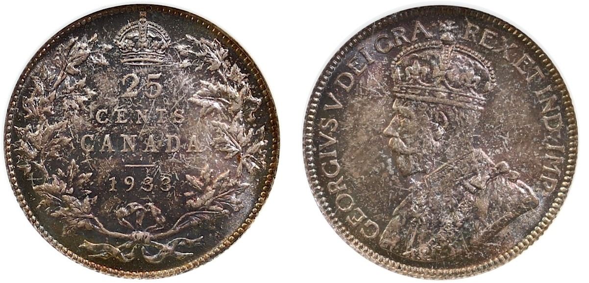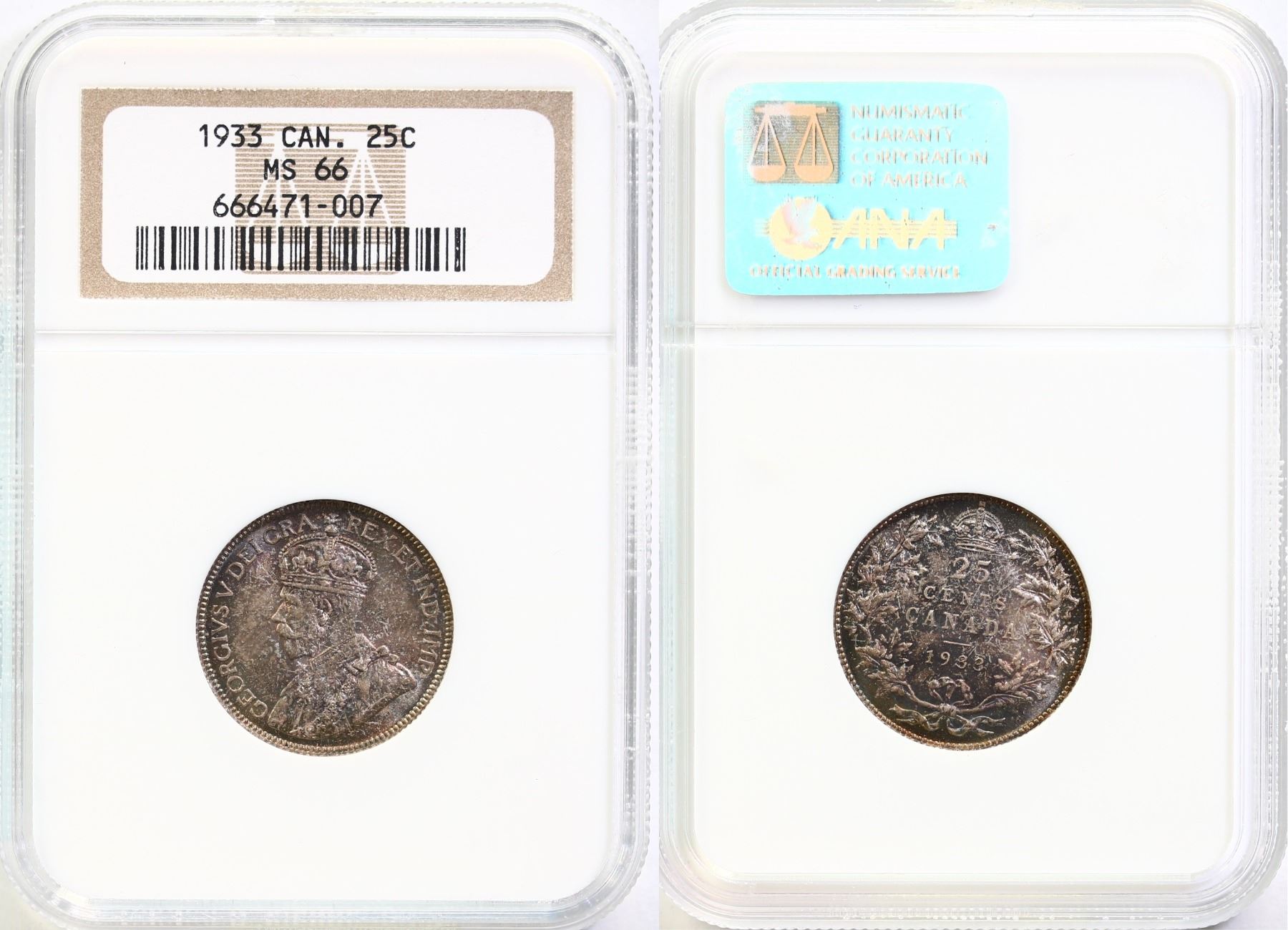 1933 25¢ NGC Superb Gem Mint State-66 Attractive autumn shades over full underlying lustre.