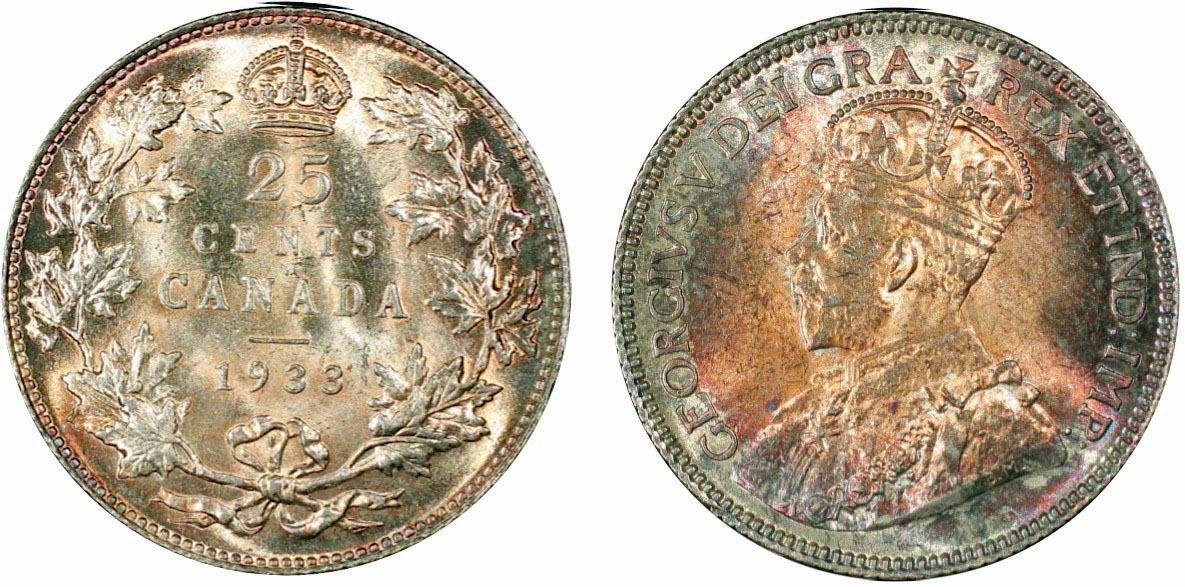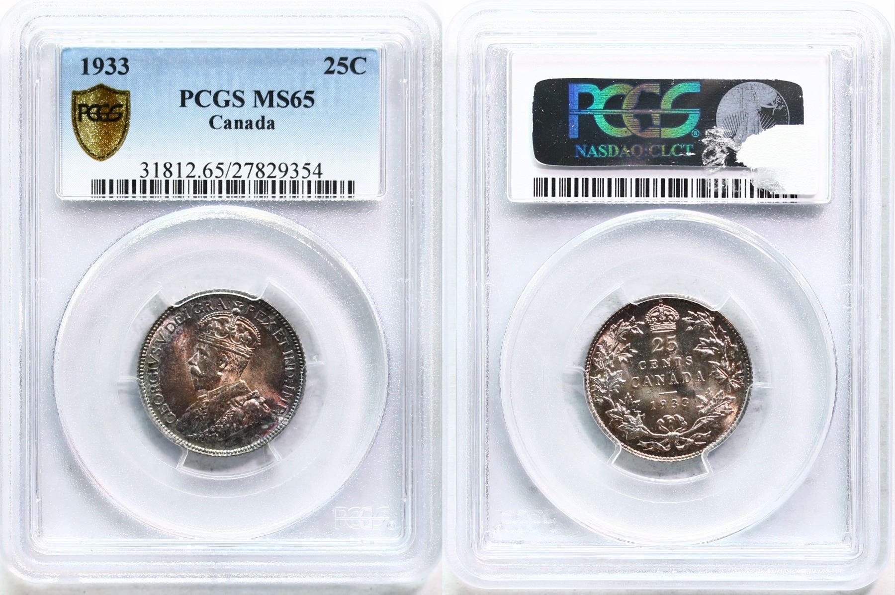1933 25¢ PCGS Gem Mint State-65, Attractively toned with strong lustre underneath