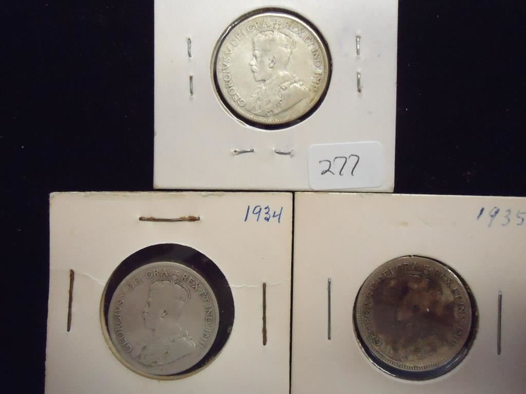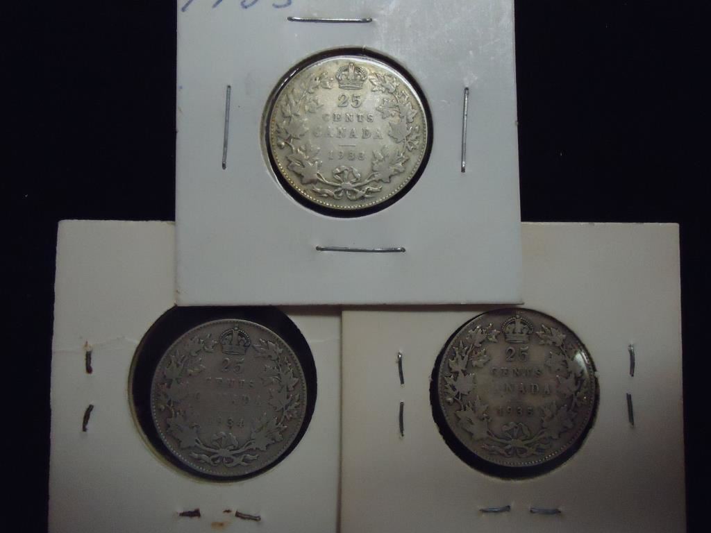 1933,34 & 35 CANADA SILVER 25 CENTS