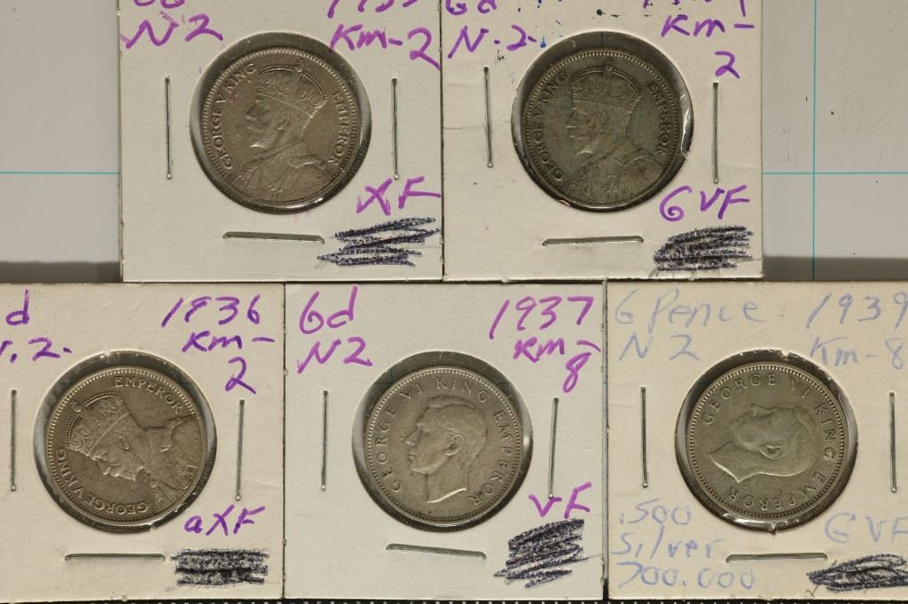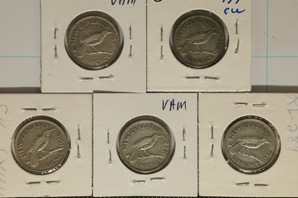 1933, 34, 36, 37 & 1939 NEW ZEALAND SILVER 6 PENCE