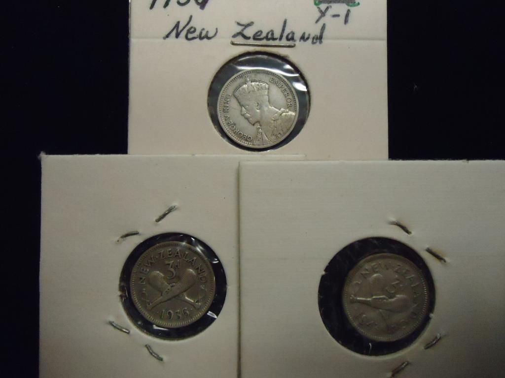 1933,36 & 43 NEW ZEALAND SILVER 3 PENCE