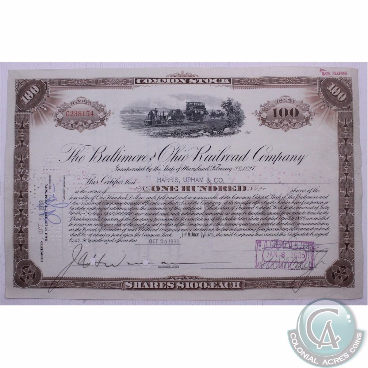 1933 Baltimore and Ohio Railroad Company Common Stock certificate 100 Shares