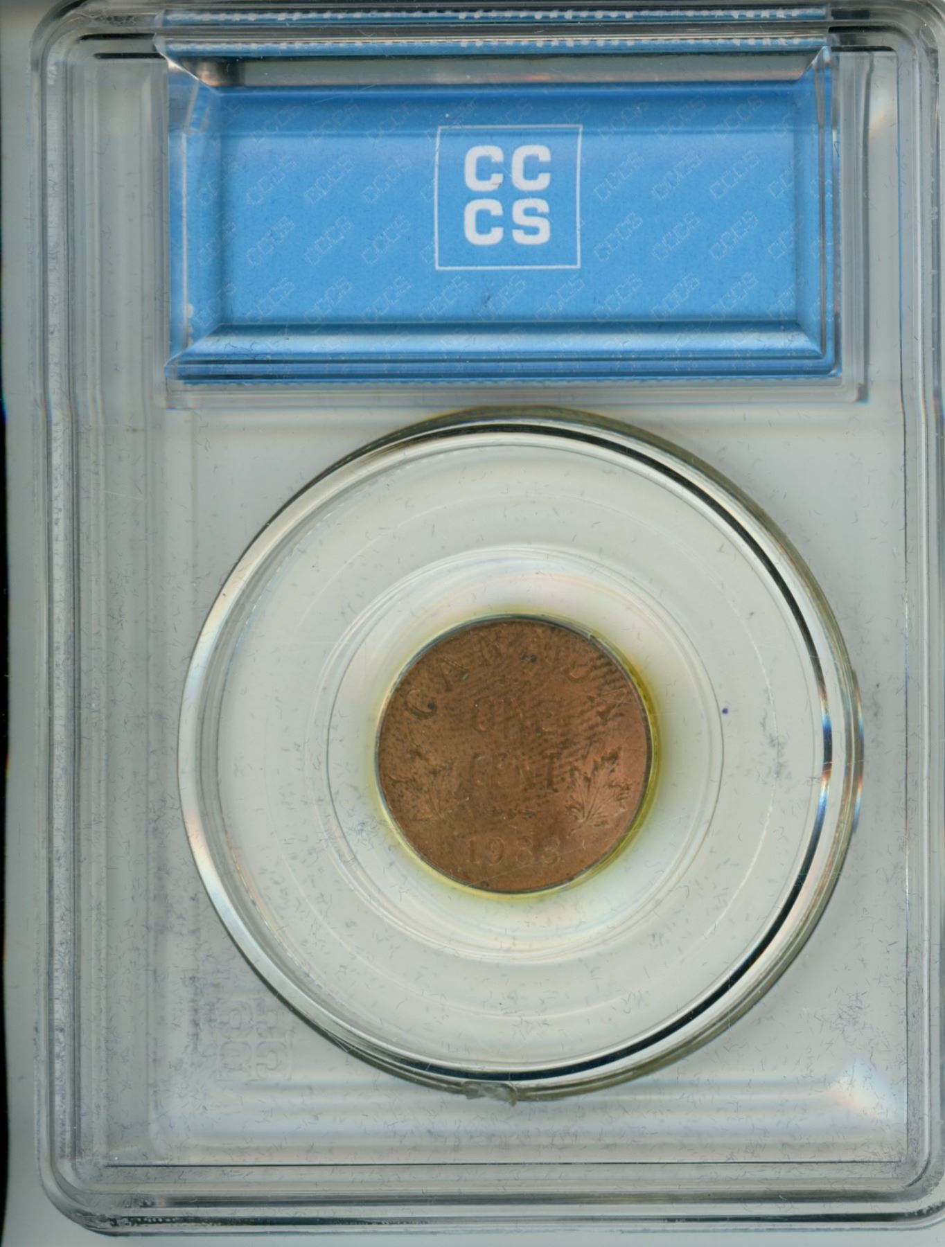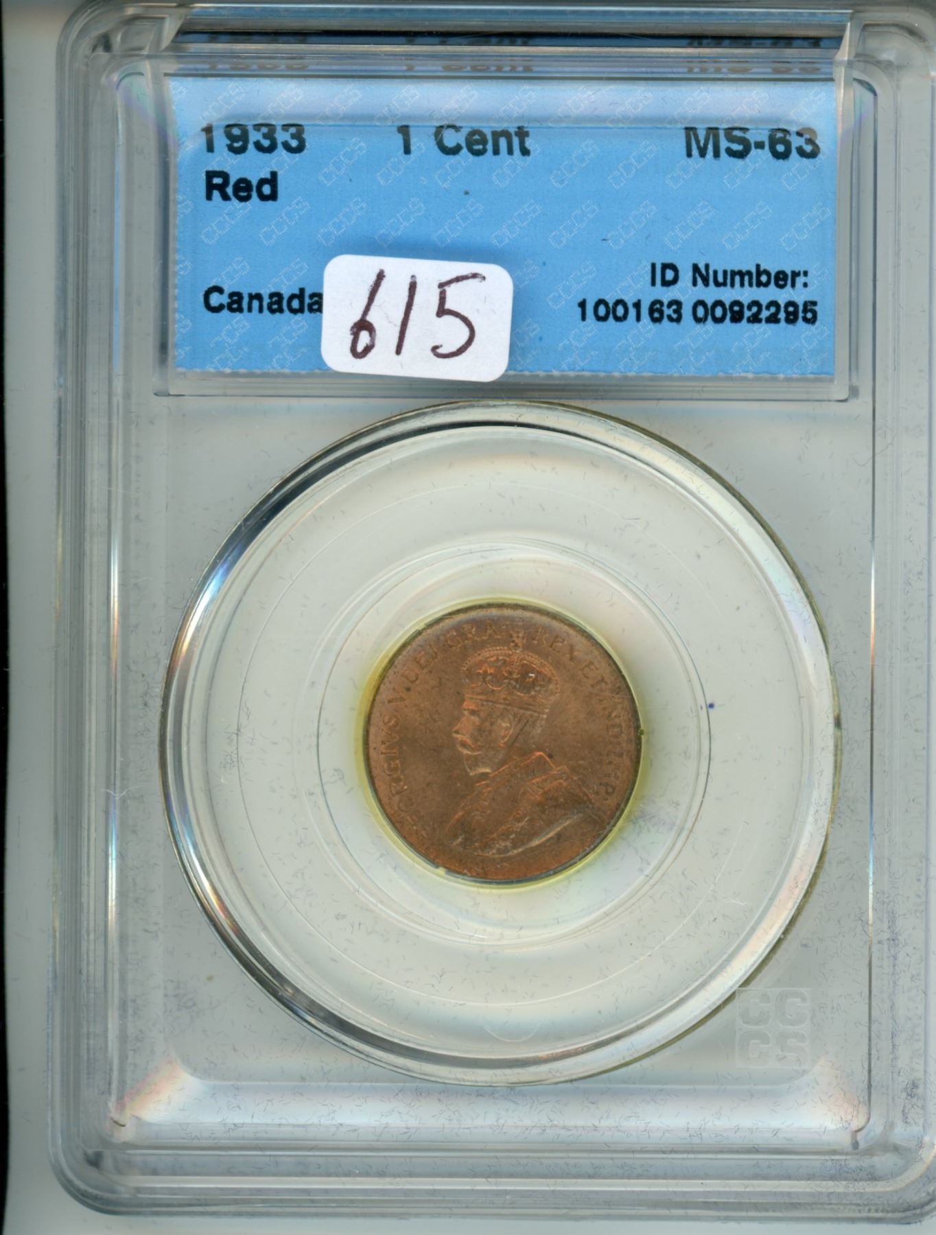 1933 CCCS graded, Canadian red 1 cent penny coin - MS63