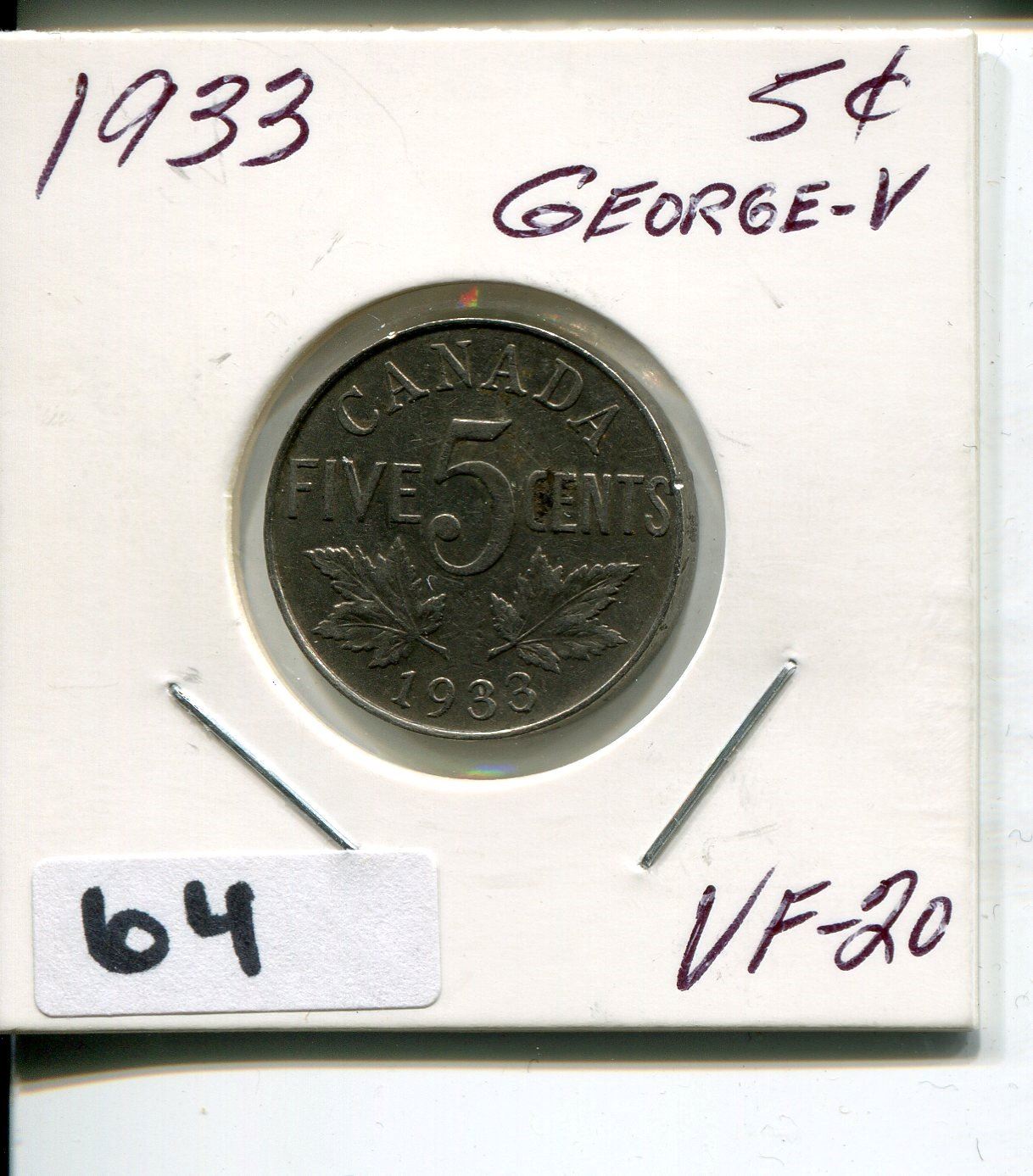 1933 CNDN GEORGE V 5 CENT PC