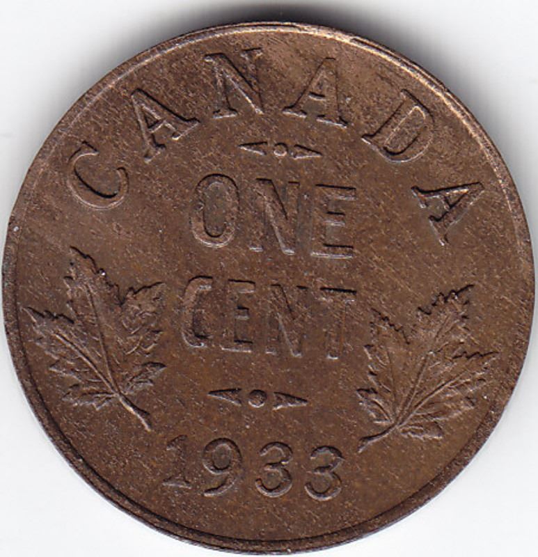 1933 Canadian Small One Cent Penny Coin - MS-60, Trace Red Condition