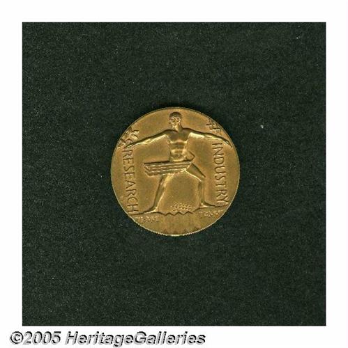 <B>1933 Century of Progress Medal PR65 Uncertified.</B></I> HK-463. Bronze. 40 mm. A very Art Deco medal with a youthful figure on the obverse that pays tribute to man's research and industry. The reverse depicts the plan of the Exposition curled into the circular shape of the medal. The black box is essentially as-issued, and the original fold-out card accompanies.
