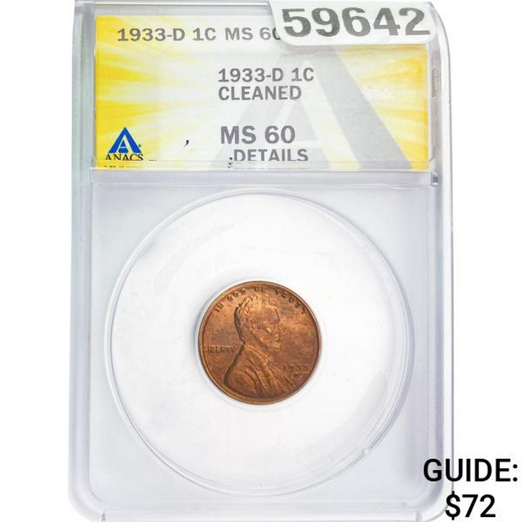 1933-D 1C ANACS MS60 Details