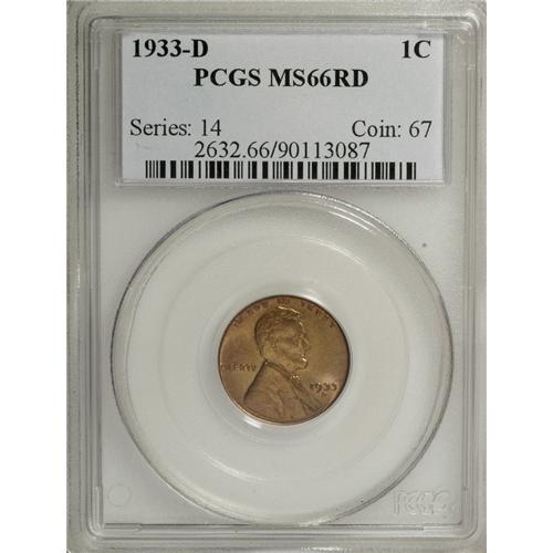 <B>1933-D 1C MS66 Red PCGS.</B></I> PCGS Population (288/19). NGC Census: (520/72). Mintage: 6,200,000. Numismedia Wsl. Price for NGC/PCGS coin in MS66: $365. (#2632)<BR><BR><b>Shipping:</b> Coins & Currency (<a target="_blank" href="http://www.heritageauctions.com/common/shipping.php">view shipping information</a>)
