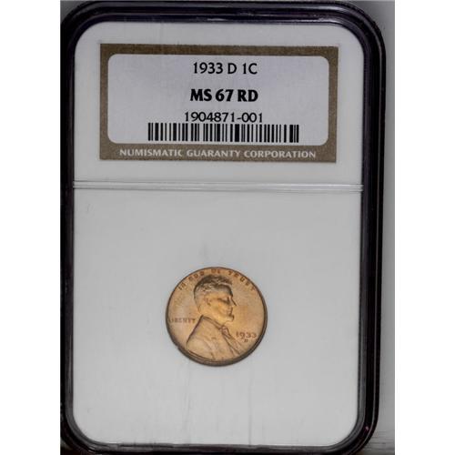 1933-D 1C MS67 Red NGC. A sharply struck example with
