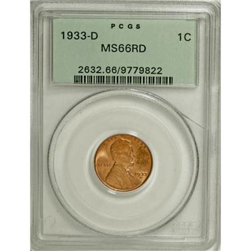 <B>1933-D 1C MS66 Red PCGS.</B></I> PCGS Population (293/19). NGC Census: (260/36). Mintage: 6,200,000. Numismedia Wsl. Price for NGC/PCGS coin in MS66: $365. (#2632)<BR><BR><B>Coin Engraver:</B> Victor D. Brenner<BR><BR><b>Shipping:</b> Coins & Currency (<a target="_blank" href="http://www.heritageauctions.com/common/shipping.php">view shipping information</a>)