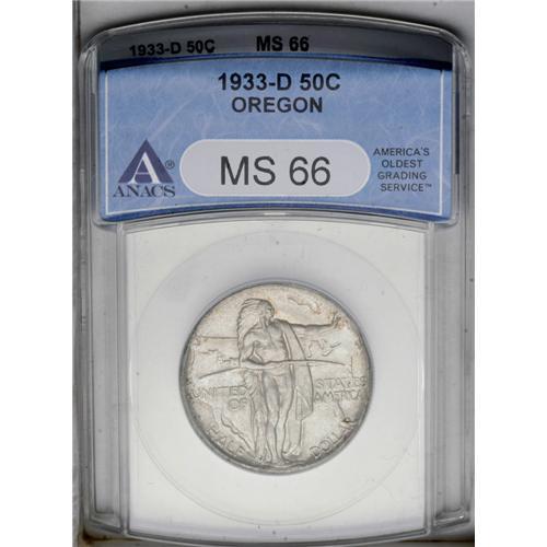 1933-D 50C Oregon MS66 ANACS. A natural coating of gol 1933-D[50C] Oregon MS66 ANACS.