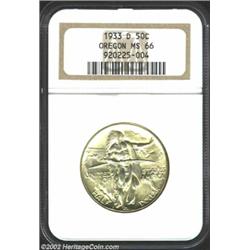 1933-D 50C Oregon MS66 NGC. Magnificently preserved with good luster, attractive yellow-green color,