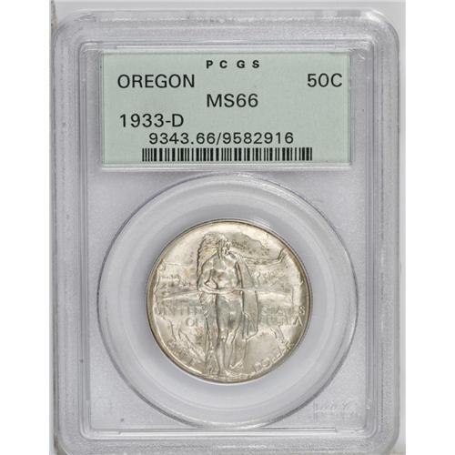 1933-D 50C Oregon MS66 PCGS. A sharply struck Gem, lus