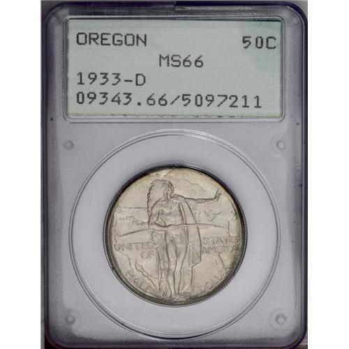 1933-D 50C Oregon MS66 PCGS. A shimmering and crisply 1933-D[50C] Oregon MS66 PCGS.