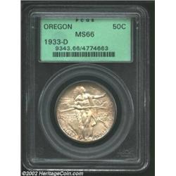 1933-D 50C Oregon MS66 PCGS. Even light gray and rose toning covers each side of this clean, problem-free, and original example. Important notice: We expect to be auctioning lots at the rate of 200-250 per hour. Sometimes eBay Premier live bid software cannot keep up with that pace, so we strongly recommend that you place a realistic proxy bid now as insurance to avoid disappointment. Also please note that all Heritage/CAA lots purchased through eBay Premier carry a 20% Buyer's Premium. Please make sure you read the Terms and Conditions.
