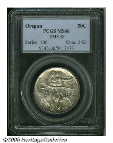 1933-D 50C Oregon MS66 PCGS. For many collectors,