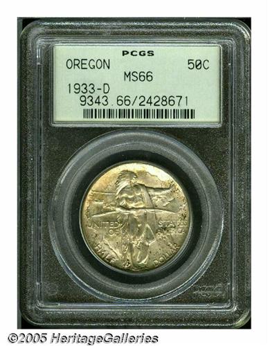 1933-D 50C Oregon MS66 PCGS. Thick, swirling mint