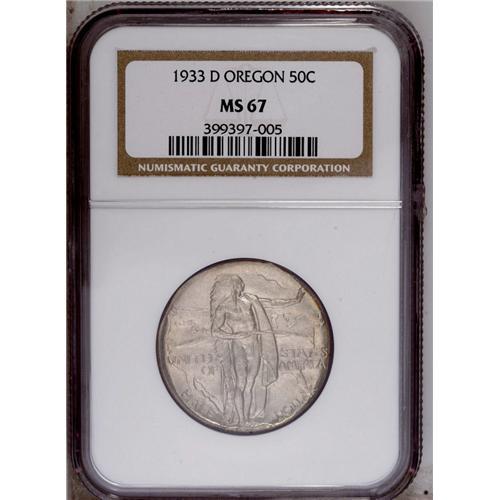 1933-D 50C Oregon MS67 NGC. Well struck with pleasing 1933-D[50C] Oregon MS67 NGC.