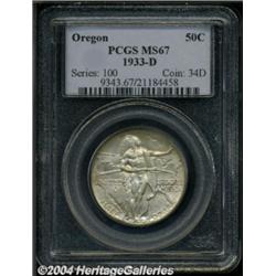 <table><tbody><tr><td><table> <TR><TD width="100%"><TABLE cellSpacing=1 cellPadding=3 width="100%" border=0><TBODY><TR><TD width="100%" bgColor=#79735c><FONT face=arial color=#ffffff size=3><B>Description</B> </FONT></TD></TR><TR><TD width="100%" bgColor=#ffffff><FONT face=arial size=2><B>1933-D 50C Oregon MS67 PCGS.</B></I> A blanket of silver-gray patina equally coats each side of this well defined Gem. A couple of tiny contact marks are mentioned on the obverse, but these hardly detract. Population: 41 in 67, 0 finer (10/03). </FONT></TD></TR></TBODY></TABLE></TD></TR></TBODY></TABLE><BR><A name=PricesRealized></A><TABLE cellSpacing=0 cellPadding=0 width="100%" bgColor=#000000 border=0><TBODY><TR><TD width="100%"><TABLE cellSpacing=1 cellPadding=3 width="100%" border=0><TBODY><TR><TD width="100%" bgColor=#79735c><A name=PR><FONT face=arial color=#ffffff size=3><B>Previous Prices from Heritage Auctions</B> </FONT></A></TD></TR><TR><TD bgColor=#f6f6ed><TABLE cellSpacing=0 cellPadding=0 width="100%" border=1><TBODY><TR><TD align=middle width="33%"><B>Date</B></TD><TD align=middle width="33%"><B>Service</B></TD><TD align=middle width="33%"><B>Price</B></TD></TR><TR bgColor=whitesmoke><TD width="33%"><B>05/13/2003</B></TD><TD width="33%">PCGS</TD><TD width="33%">$1,840.00</TD></TR><TR bgColor=whitesmoke><TD width="33%"><B>01/07/2004</B></TD><TD width="33%">PCGS</TD><TD width="33%">$12,937.50</TD></TR><TR bgColor=whitesmoke><TD width="33%"><B>01/07/2004</B></TD><TD width="33%">PCGS</TD><TD width="33%">$12,937.50</TD></TR><TR bgColor=whitesmoke><TD width="33%"><B>01/07/2004</B></TD><TD width="33%">PCGS</TD><TD width="33%">$1,897.50</TD></TR><TR bgColor=whitesmoke><TD width="33%"><B>09/20/2003</B></TD><TD width="33%">PCGS</TD><TD width="33%">$2,012.50</TD></TR><TR bgColor=whitesmoke><TD width="33%"><B>09/20/2003</B></TD><TD width="33%">PCGS</TD><TD width="33%">$2,012.50</TD></TR><TR bgColor=whitesmoke><TD width="33%"><B>07/30/2002</B></TD><TD width="33%">PCGS</TD><TD width="33%">$4,255.00</TD></TR><TR bgColor=whitesmoke><TD width="33%"><B>01/07/2000</B></TD><TD width="33%">PCGS</TD><TD width="33%">$1,897.50</TD></TR><TR bgColor=whitesmoke><TD width="33%"><B>01/07/2000</B></TD><TD width="33%">PCGS</TD><TD width="33%">$1,897.50</TD></TR><TR bgColor=whitesmoke><TD width="33%"><B>09/24/1999</B></TD><TD width="33%">PCGS</TD><TD width="33%">$1,725.00</TD></TR><TR bgColor=whitesmoke><TD width="33%"><B>08/17/1996</B></TD><TD width="33%">PCGS</TD><TD width="33%">$1,595.00</TD></TR><TR bgColor=whitesmoke><TD width="33%"><B>08/17/1996</B></TD><TD width="33%">PCGS</TD><TD width="33%">$1,595.00</TD></TR></TBODY></TABLE></TD></TR><TR><TD bgColor=#ffffff><FONT face=arial size=1 ?>PLEASE NOTE: All prices realized reflect the final hammer price PLUS the buyer's premium in auctions that charge a buyer's premium. Each item has a notation at the top of the listing indicating whether that lot included a buyer's premium. Example: A item that sells with a final hammer price of $100 and a 20% buyer's premium will display with a price realized of $120. All information listed is intended to be as accurate as possible, but errors are possible. Please use this guide carefully and inform us of any inaccuracies. </FONT></TD></TR></TBODY></TABLE></TD></TR></TBODY></TABLE><BR><TABLE cellSpacing=0 cellPadding=0 width="100%" bgColor=#000000 border=0><TBODY><TR><TD width="100%"><TABLE cellSpacing=1 cellPadding=3 width="100%" border=0><TBODY><TR><TD width="100%" bgColor=#79735c colSpan=6><FONT face=arial color=#ffffff size=3><B>Price Guide*</B> </FONT></TD></TR><TR bgColor=#f6f6ed><TD align=middle><B>Grade</B> </TD><TD align=middle><B>Coin World<BR>(Trends)</B> </TD><TD align=middle><B>Numismedia<BR>Retail</B> </TD><TD align=middle><B>Numismedia<BR>Wholesale</B> </TD><TD align=middle><B>Coin<BR>Universe</B> </TD><TD align=middle><B>Heritage<BR>Value Index</B> </TD></TR><TR bgColor=#ffffff><TD align=middle>66</TD><TD align=right>$900.00</TD><TD align=right>$680.00</TD><TD align=right>$545.00</TD><TD align=right>$950.00</TD><TD align=right>$626.75</TD></TR><TR style="FONT-WEIGHT: bold" bgColor=#cccfdd><TD align=middle>67</TD><TD align=right>$2,500.00</TD><TD align=right>---</TD><TD align=right>$2,075.00</TD><TD align=right>$2,750.00</TD><TD align=right>$2,161.67</TD></TR><TR bgColor=#ffffff><TD align=middle>68</TD><TD align=right>---</TD><TD align=right>---</TD><TD align=right>---</TD><TD align=right>---</TD><TD align=right>---</TD></TR><TR bgColor=#ffffff><TD colSpan=6><FONT size=1>*All information listed is intended to be as accurate as possible, but errors are possible. No item may be returned or refused based on this information which is provided as a service to our customers. You should contact each pricing source directly to determine the accuracy of this information. </FONT></TD></TR></TBODY></TABLE></TD></TR></TBODY></TABLE><BR><TABLE cellSpacing=0 cellPadding=0 width="100%" bgColor=#000000 border=0><TBODY><TR><TD width="100%"><TABLE cellSpacing=1 cellPadding=3 width="100%" border=0><TBODY><TR><TD width="100%" bgColor=#79735c><FONT face=arial color=#ffffff size=3><B>Population Guide</B> </FONT></TD></TR><TR bgColor=#ffffff><TD align=middle><!-- Begin Output of Population Grid--><TABLE cellSpacing=0 cellPadding=0 width="100%" border=0><TBODY><TR><TD vAlign=center><TABLE cellSpacing=0 width="100%" border=1 cellsadding="3"><TBODY><TR><TD vAlign=center><TABLE cellSpacing=0 cellPadding=3 width="100%" border=1><TBODY><TR><TD vAlign=center align=middle bgColor=#f0f1e8 colSpan=2 <CENTER><FONT face=Arial size=2><B>PCGS Pop </B></FONT><CENTER></CENTER></TD><TD vAlign=center align=middle bgColor=#f0f1e8 colSpan=2><CENTER><FONT face=Arial size=2><B>NGC Pop</B></CENTER></FONT></TD></TR><TR><TD vAlign=center><FONT face=Arial size=2>(67)</FONT> </TD><TD vAlign=center align=right><FONT face=Arial size=2>41</FONT> </TD><TD vAlign=center><FONT face=Arial size=2>(67)</FONT> </TD><TD vAlign=center align=right><FONT face=Arial size=2>9</FONT>